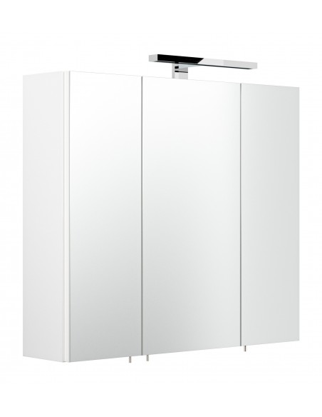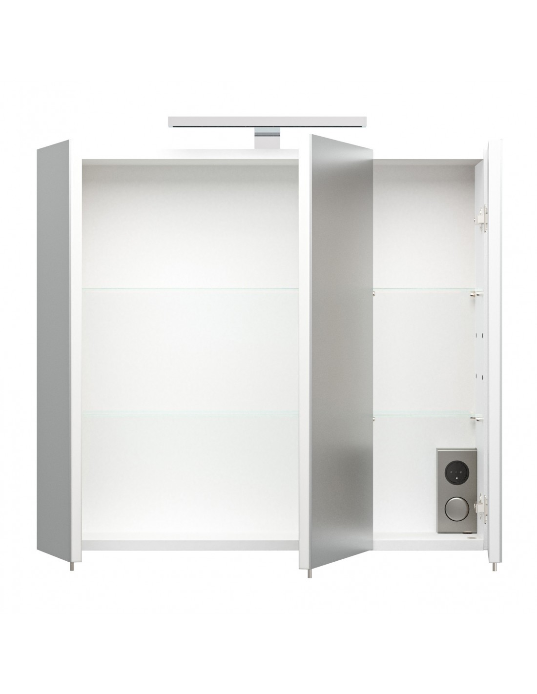 Spejlskab med 5W LED lampe, udført i et design af mdf og glas. Spejlskabet måler 62 cm i højden og 70 x 17 cm i bredde og dybde. I skabet forefindes 4 glashylder og 1 stikdåse, som gør tilslutning af eksempelvis barbermaskine lettere.