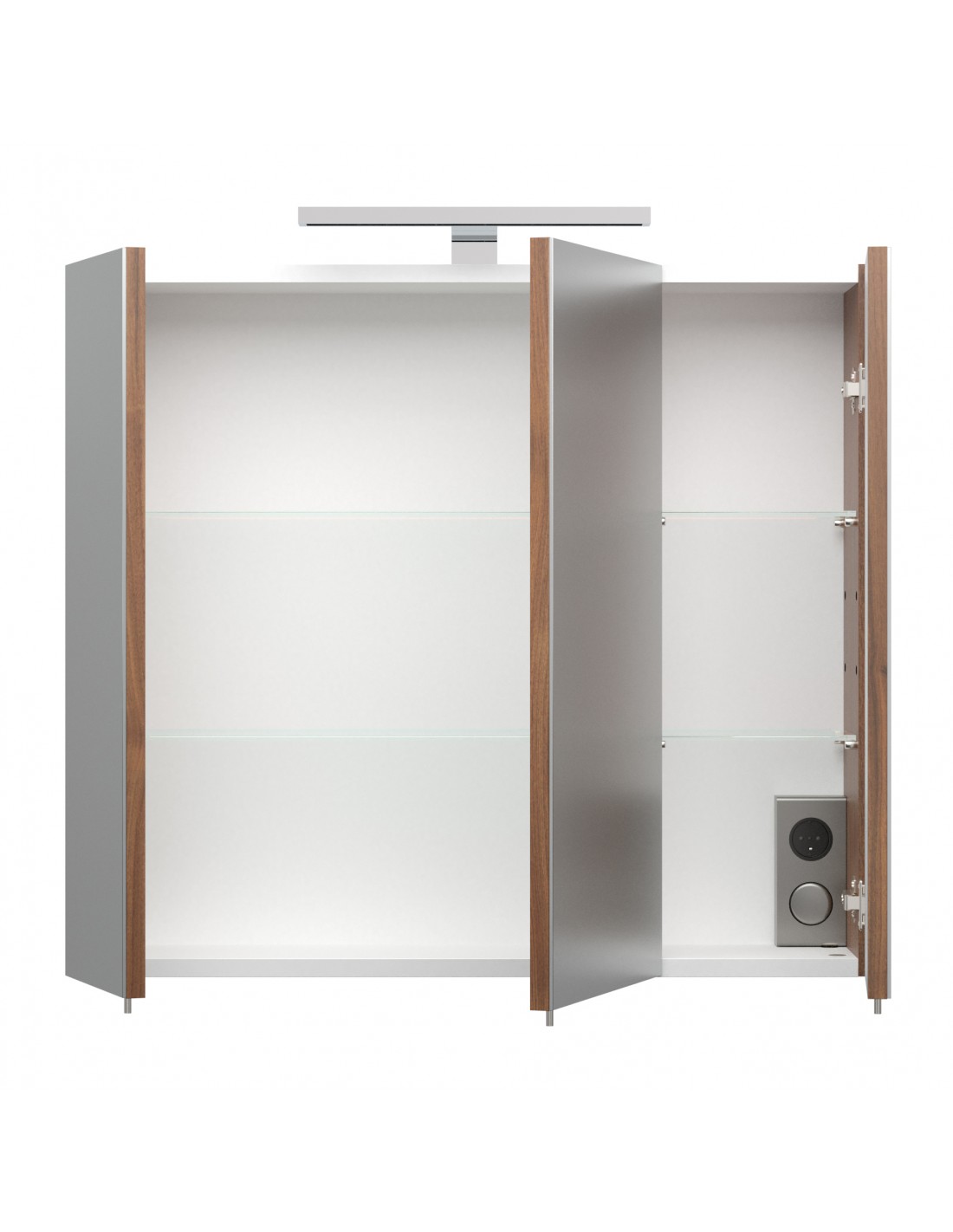 Spejlskab med 5W LED lampe i mdf og glas H62 x B70 cm - Valnød