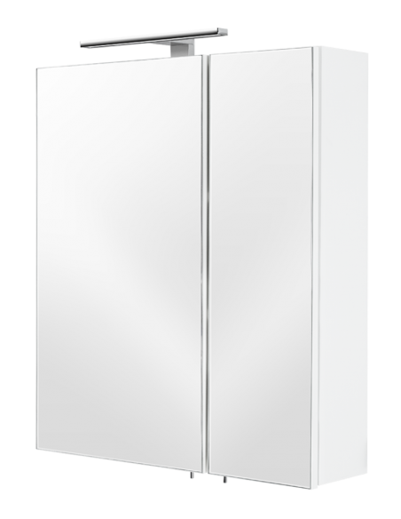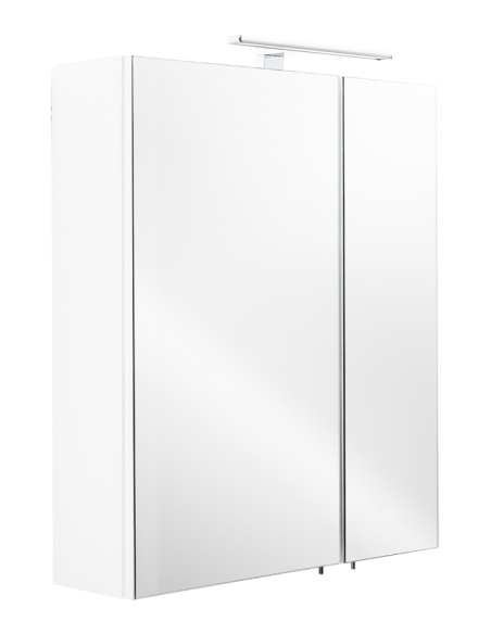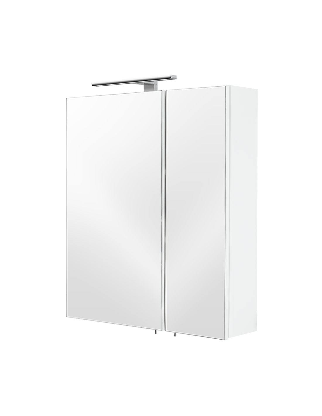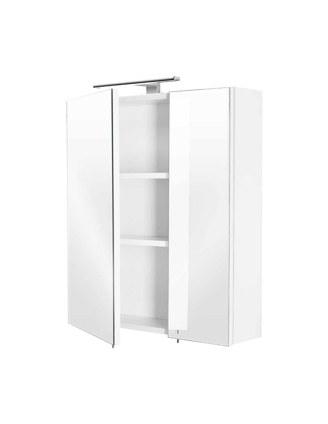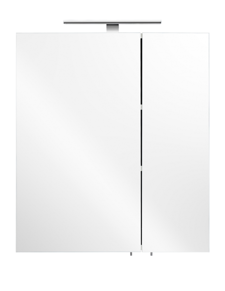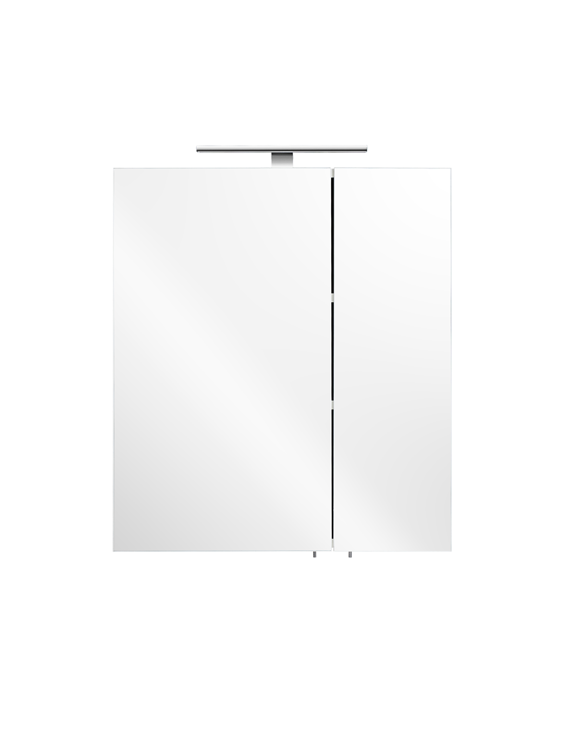 Spejlskab med 5W LED lampe, udført i et design af mdf og glas. Spejlskabet måler 68 cm i højden og 60 x 16 cm i bredde og dybde. I skabet forefindes 6 hylderum og 1 stikdåse, som gør tilslutning af eksempelvis barbermaskine lettere.