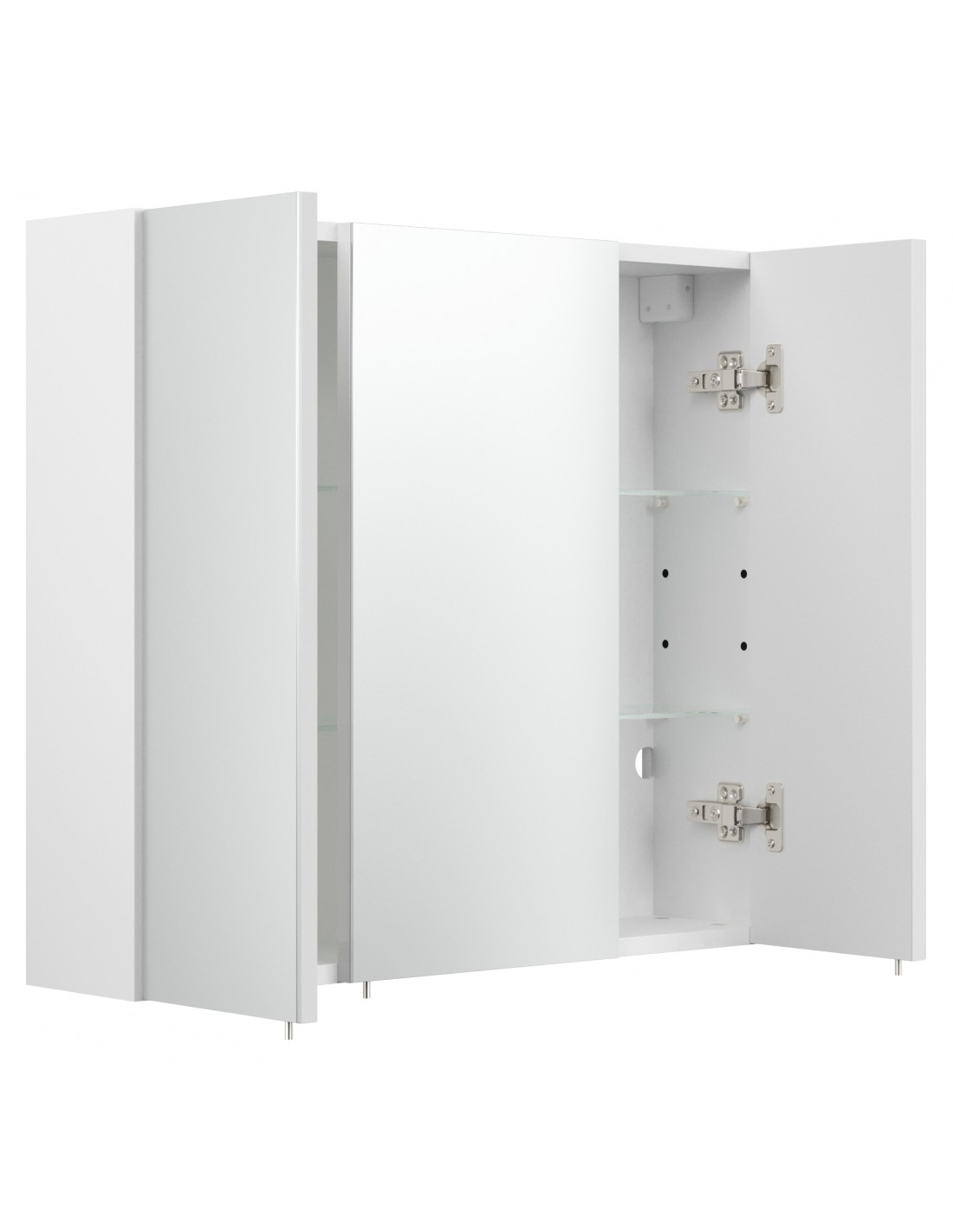 Spejlskab udført i et design af mdf og glas. Spejlskabet måler 62 cm i højden og 70 x 17 cm i bredde og dybde. I skabet forefindes 4 glashylder.