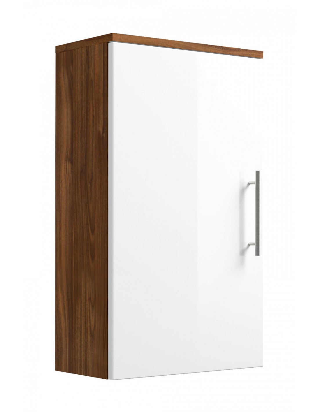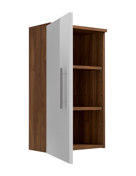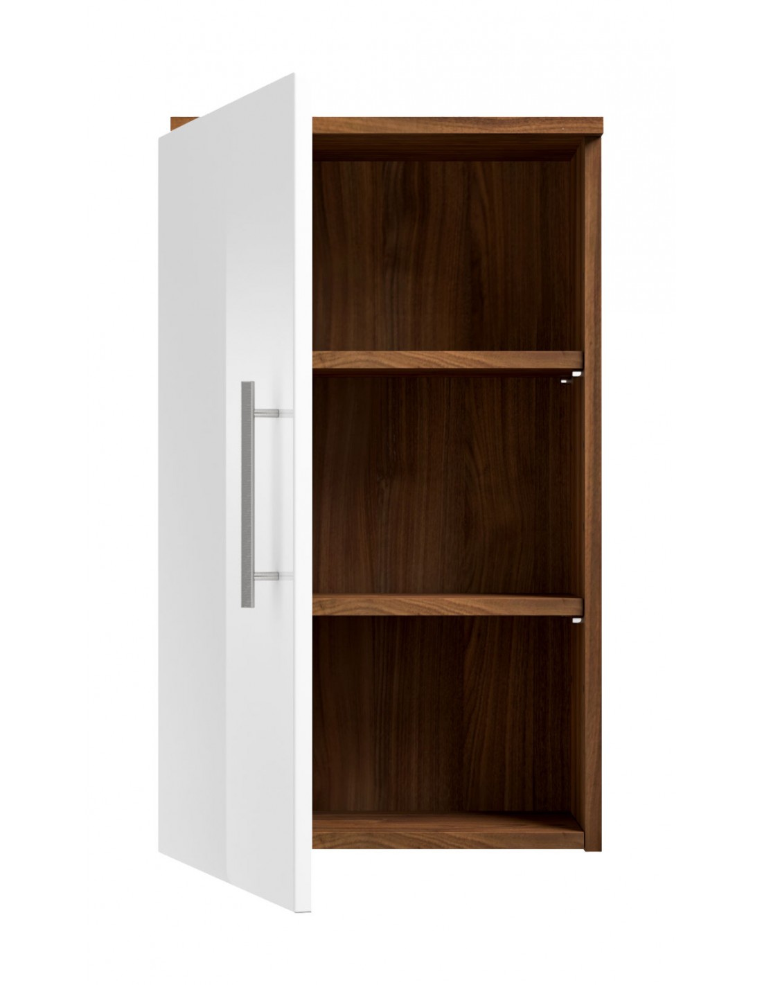 Vægskab i mdf H62 x B35 cm - Hvid højglans/Valnød