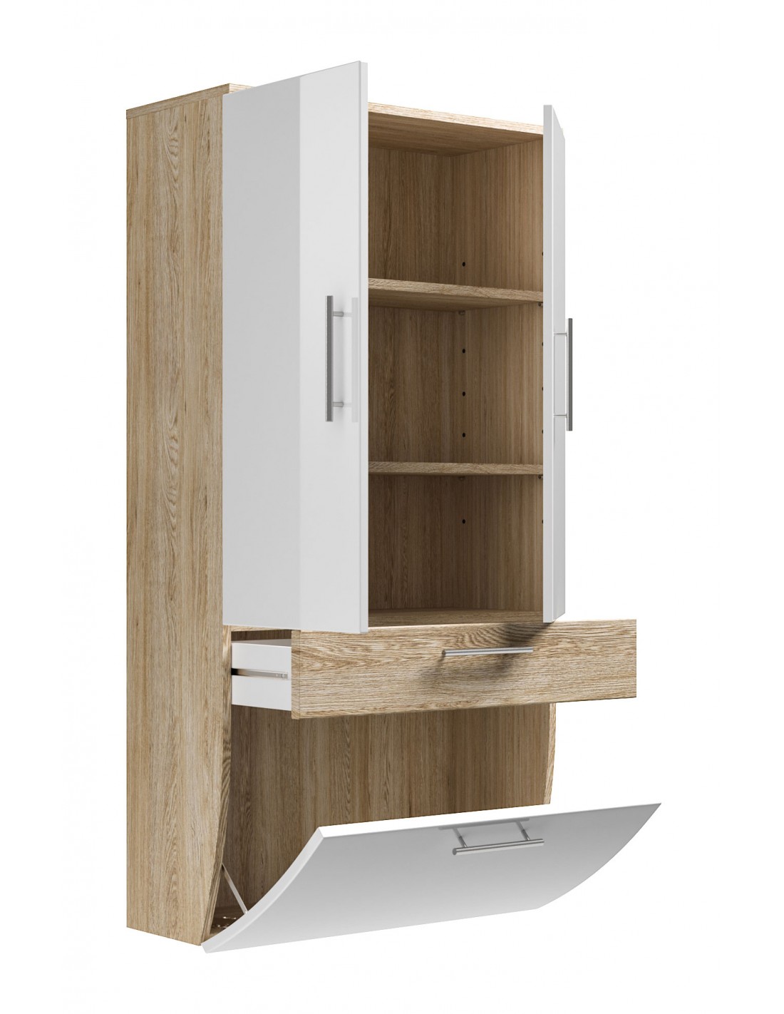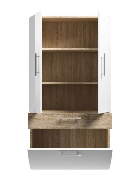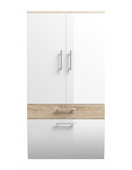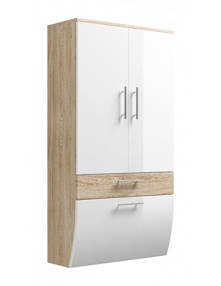 Vægskab i mdf H134,5 x B70 cm - Sonoma eg/Hvid højglans
