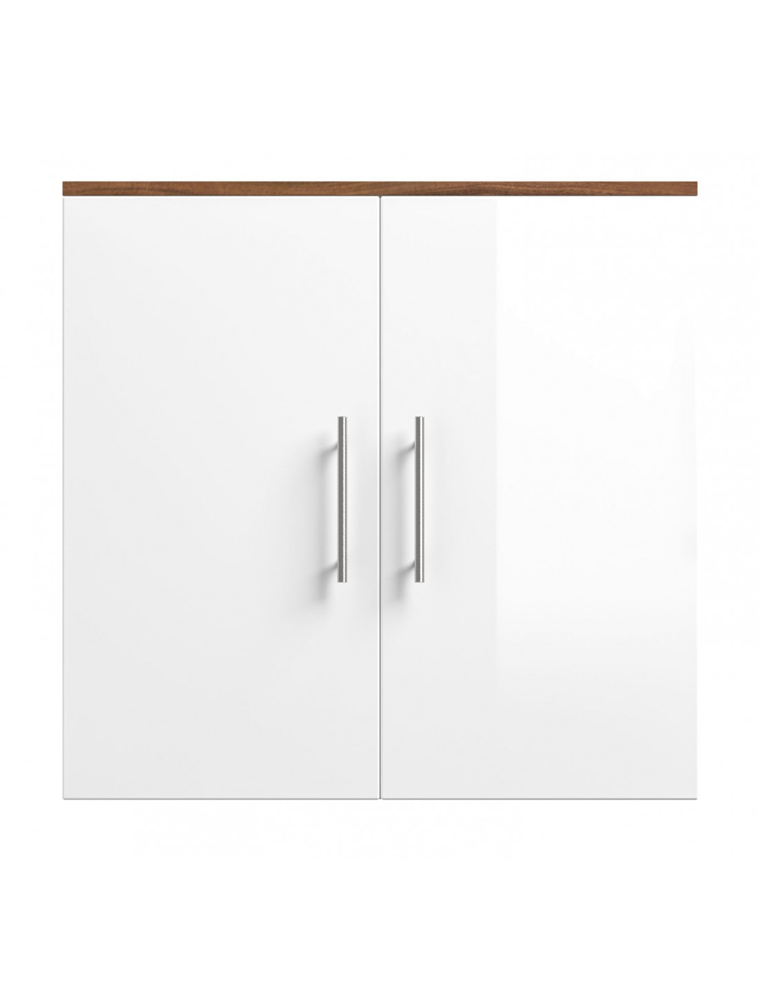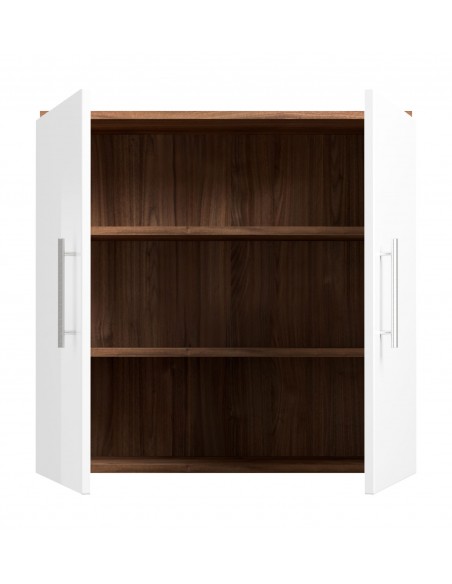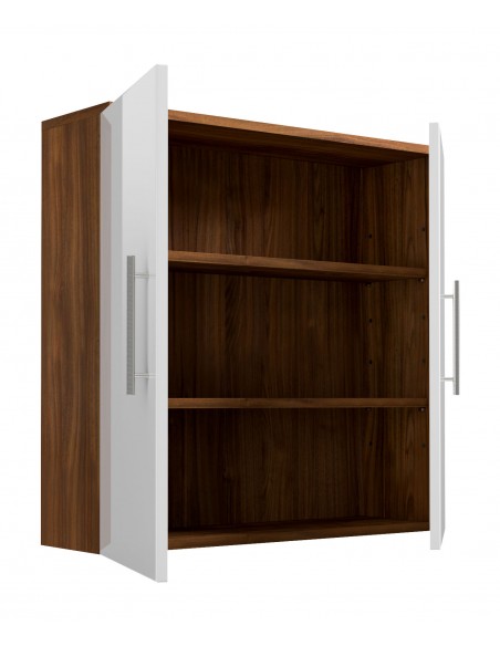 Vægskab i mdf H68 x B70 cm - Hvid højglans/Valnød