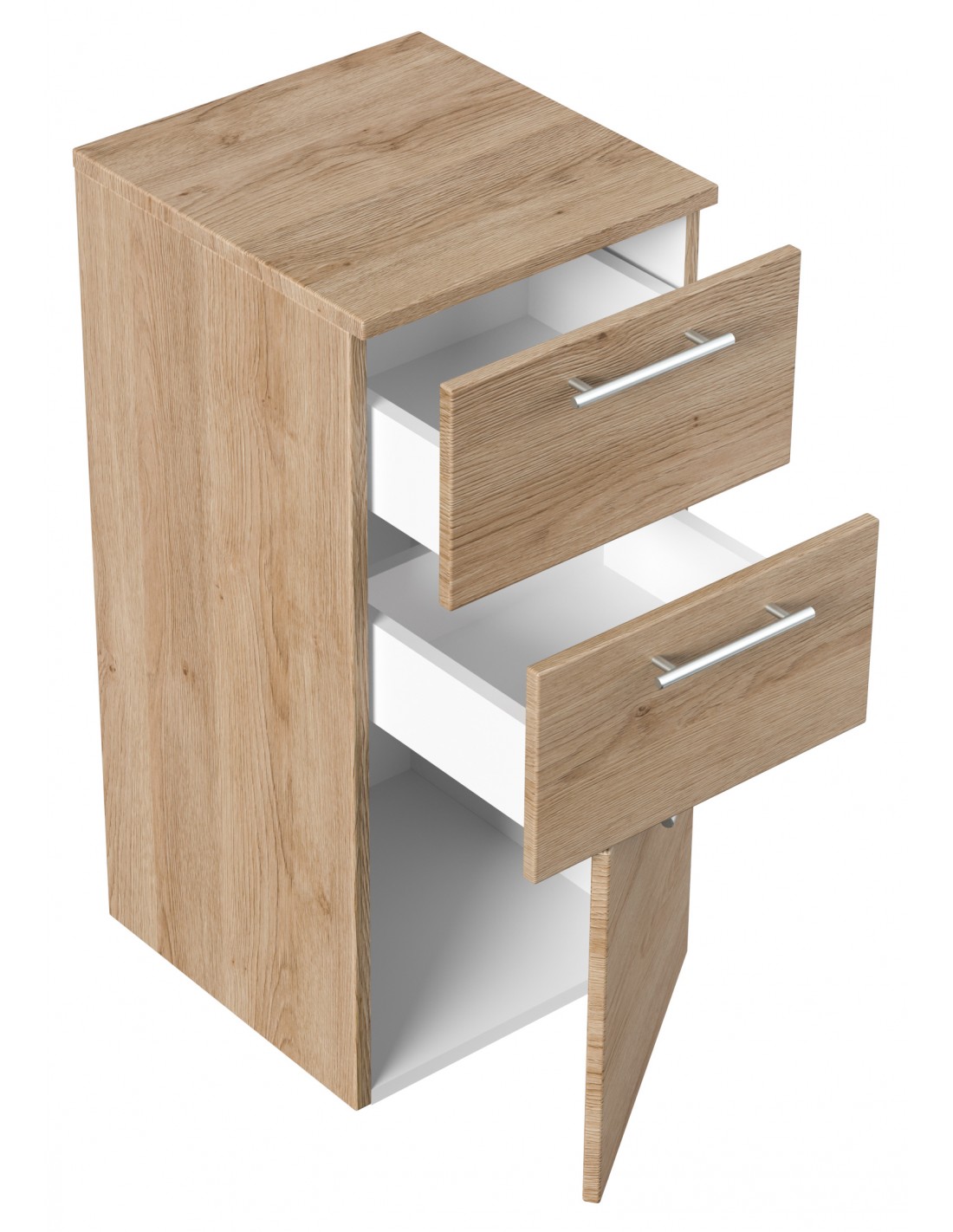 Vægskab udført i et design af mdf. Skabet måler 75 cm i højden og 35,2 x 36,8 cm i bredde og dybde. I skabet forefindes 2 skuffer og 1 skabsrum.
