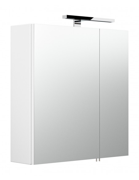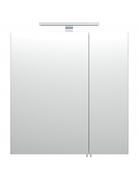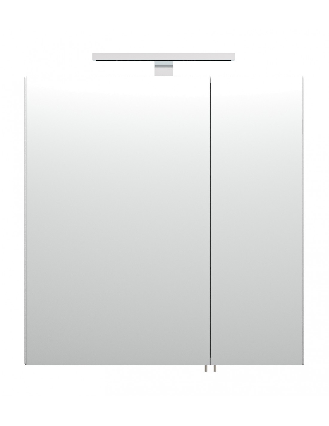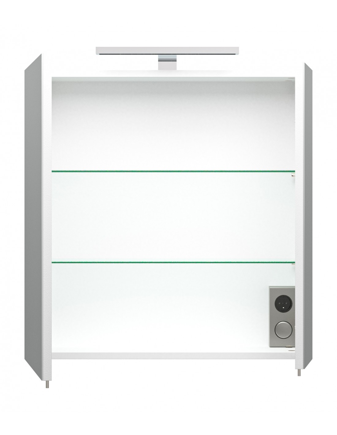 Spejlskab med 5W LED lampe, udført i et design af mdf og glas. Spejlskabet måler 62 cm i højden og 60 x 17 cm i bredde og dybde. I skabet forefindes 2 glashylder og 1 stikdåse, som gør tilslutning af eksempelvis barbermaskine lettere.