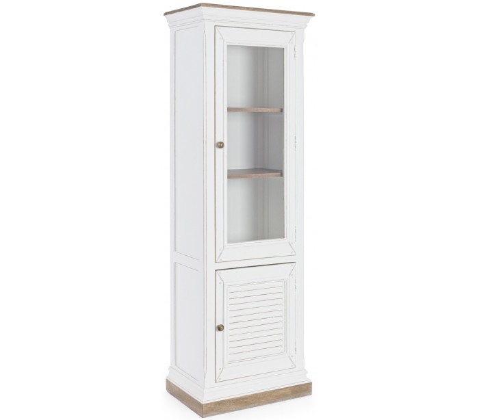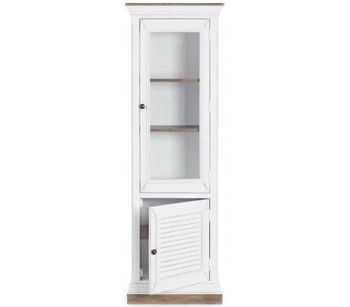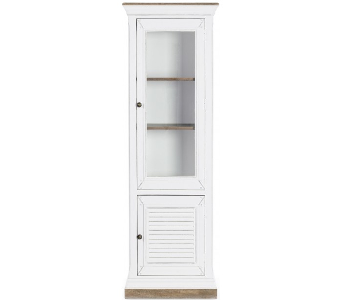 Vitrineskab med 3 hylderum og 1 skab H180 x B60 x D38 cm - Rustik hvid