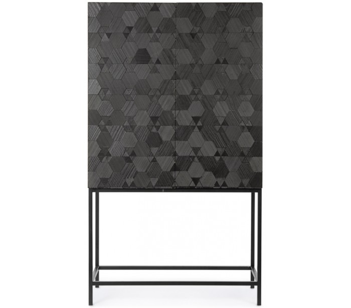 Vitrineskab i stål og ask træ H155 x B90 x D40 cm - Rustik sort