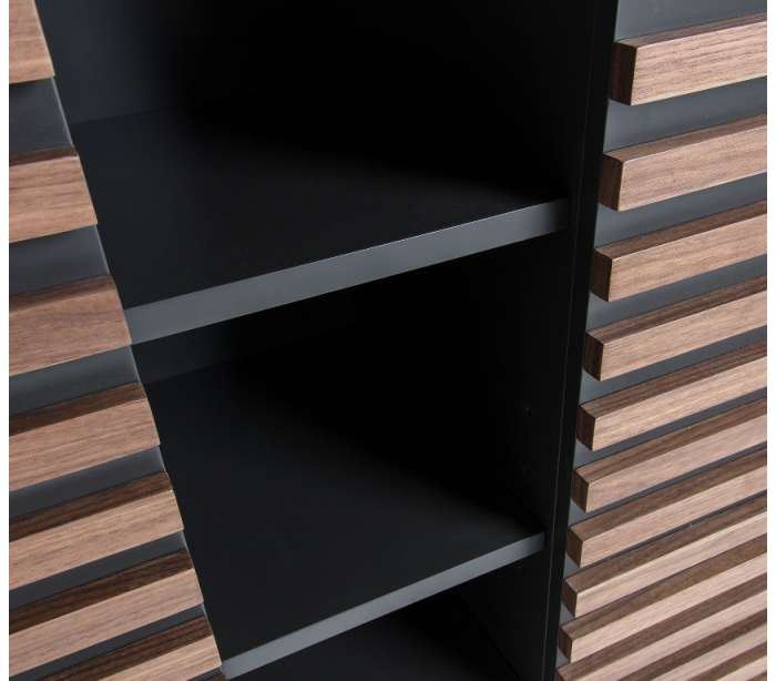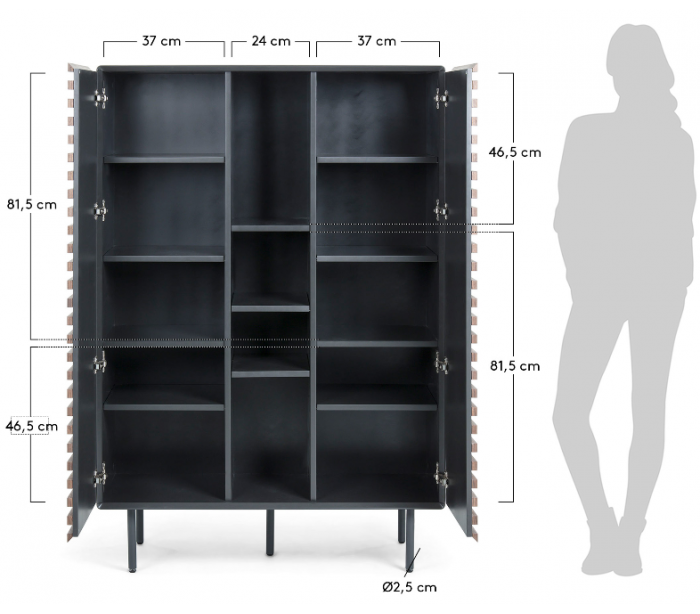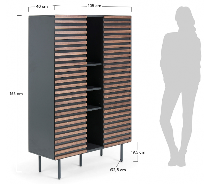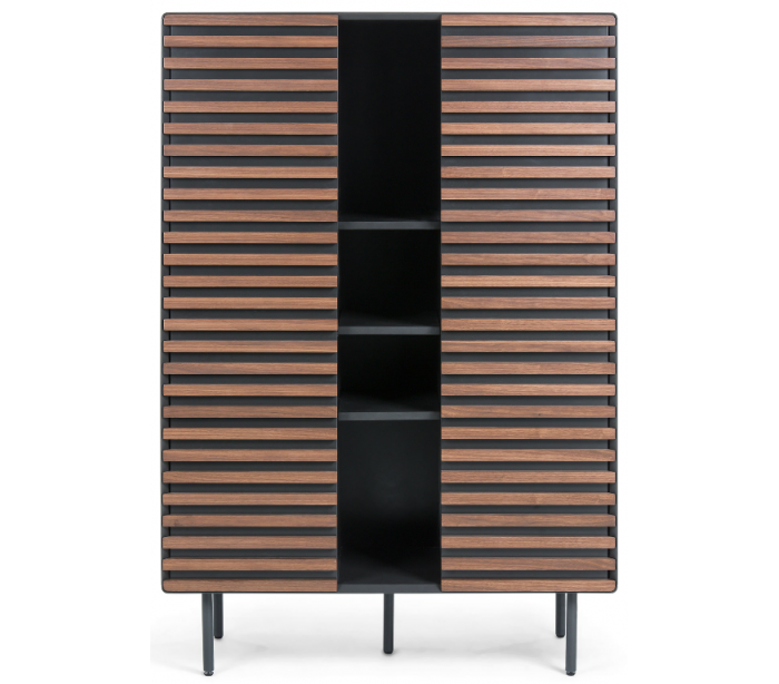 Highboard med 2 skabe og 4 hylderum, udført i et skandinavisk design fra LaForma. Highboardet er fremstillet i mdf og valnødde finér og måler 105 cm i bredden og 155 cm i højden.