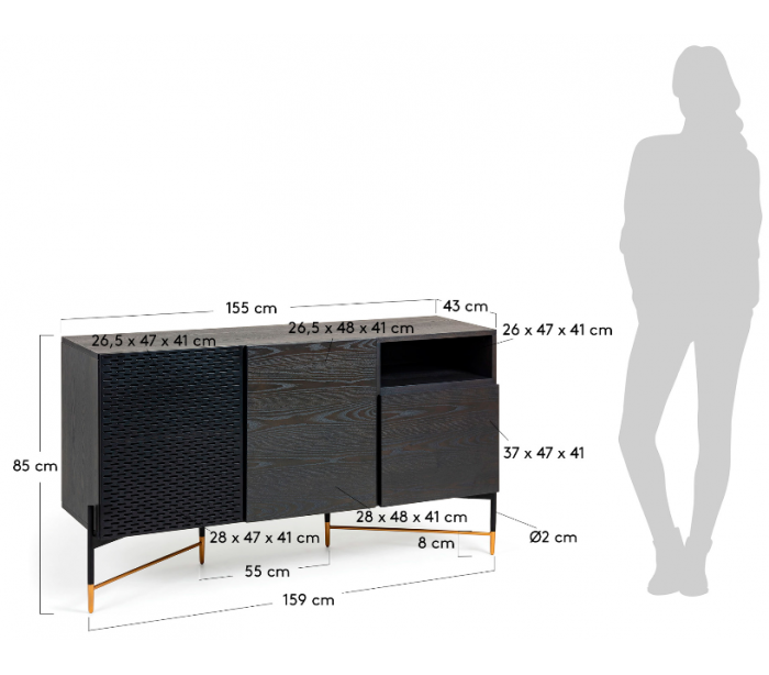 Norfort sideboard i mdf og ask finér B155 cm - Sort/Guld