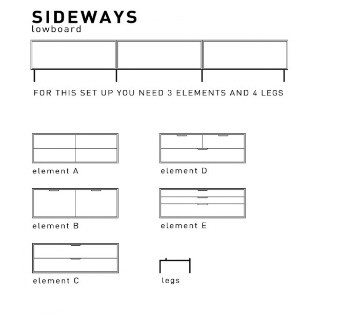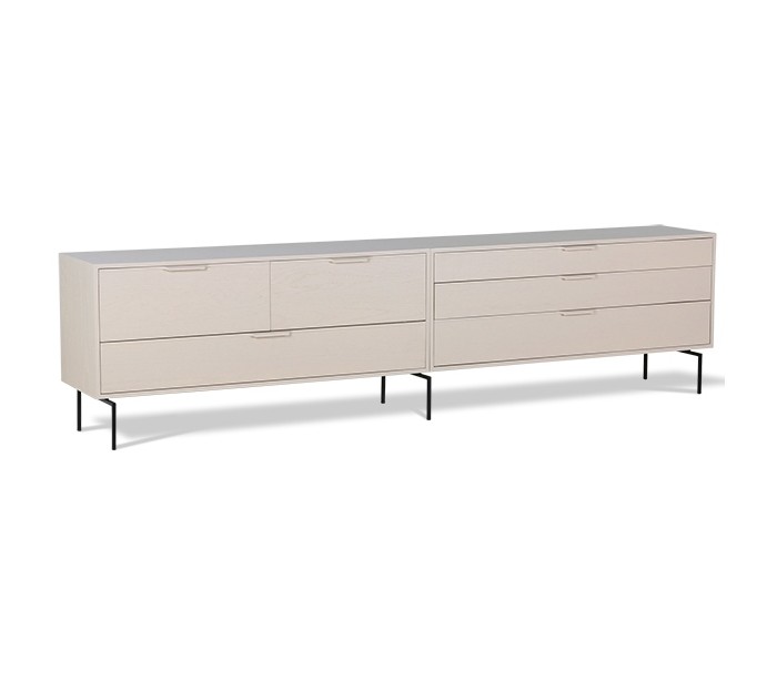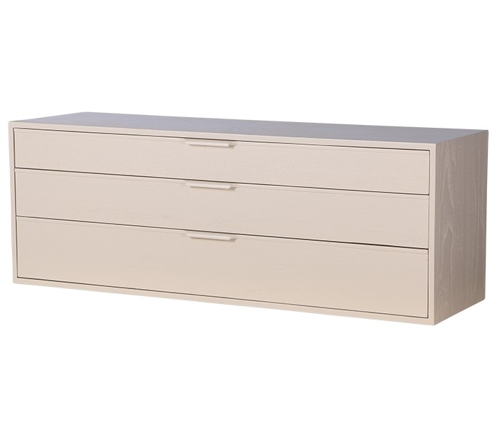 Kabinet modul E med 3 skuffer, udført i et design af sandfarvet sunkaitræ og finér. Modulet måler 36 cm i højden og 100 cm i bredden. Skab dit eget møbel med moduler - ingen begrænsninger i bredden, og op til 3 moduler ovenpå hinanden. Husk dog at tilkøbe ben (MKA1966).