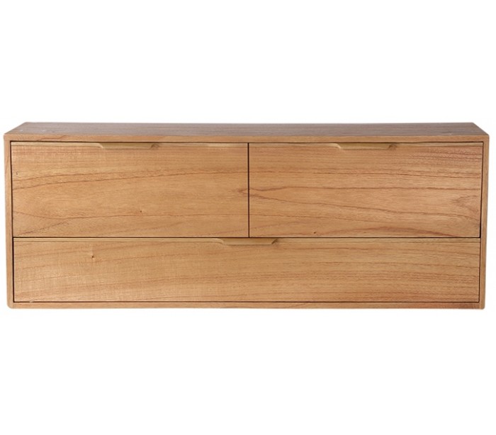 Kabinet modul D med 3 skuffer, udført i et design af naturfarvet sunkaitræ og finér. Modulet måler 36 cm i højden og 100 cm i bredden. Skab dit eget møbel med moduler - ingen begrænsninger i bredden, og op til 3 moduler ovenpå hinanden. Husk dog at tilkøbe ben (MKA1966).