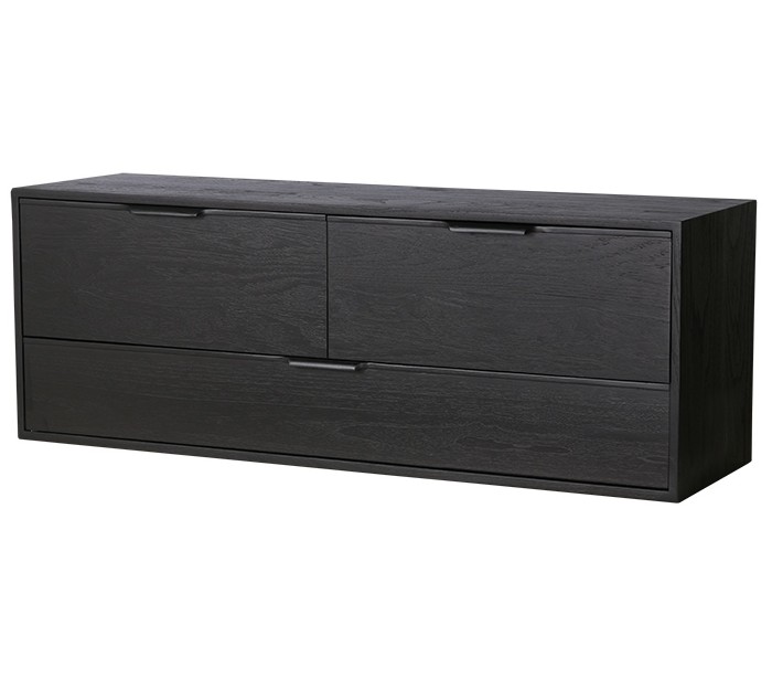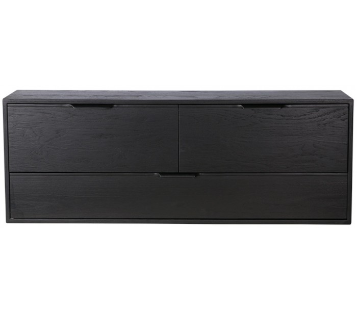 Kabinet modul D med 3 skuffer, udført i et design af sortlakeret sunkaitræ og finér. Modulet måler 36 cm i højden og 100 cm i bredden. Skab dit eget møbel med moduler - ingen begrænsninger i bredden, og op til 3 moduler ovenpå hinanden. Husk dog at tilkøbe ben (MKA1966).