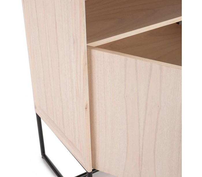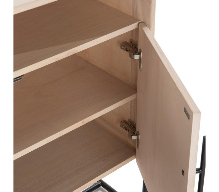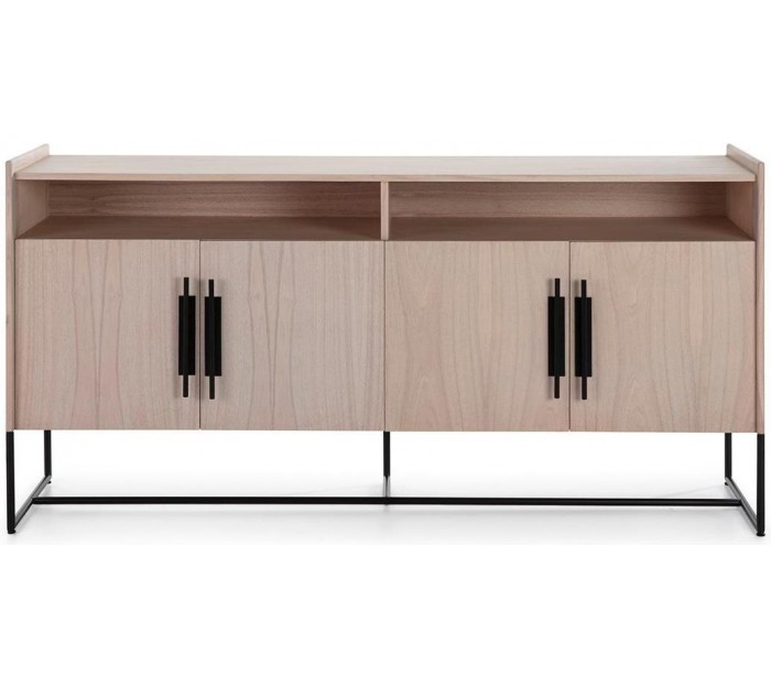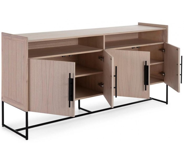 Sideboard udført i et design af naturfarvet træ og med stel i sortlakeret metal. Grebene er udført i sortlakeret metal. Sideboardet kommer med 2 hylderum samt 2 dobbeltskabe med hylderum. Sideboardet måler 180 cm i bredden og 94 cm i højden.