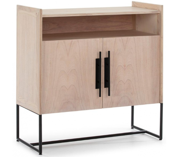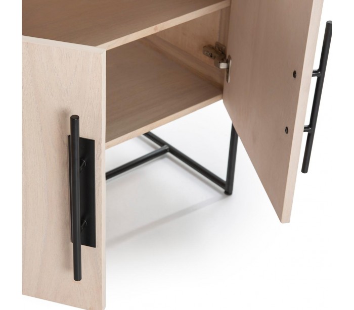 Sideboard udført i et design af naturfarvet træ og med stel i sortlakeret metal. Grebene er udført i sortlakeret metal. Sideboardet kommer med 1 hylderum samt 1 dobbeltskab med 2 hylderum. Sideboardet måler 90 cm i bredden og 93 cm i højden.