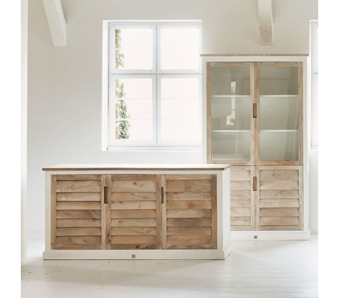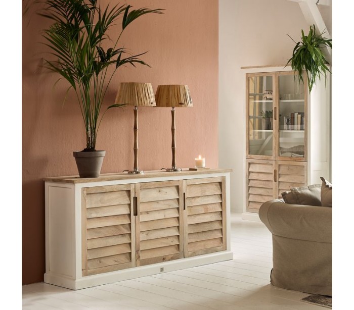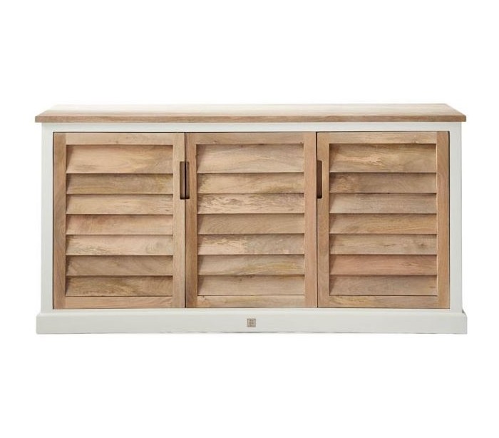 Riviera Maison sideboard i et rustikt design af mangotræ. Sideboardet indeholder i alt 3 skabe, der i alt gemmer på 6 hylderum og 3 skuffer og måler 91 cm i højden og 182 cm i bredden.