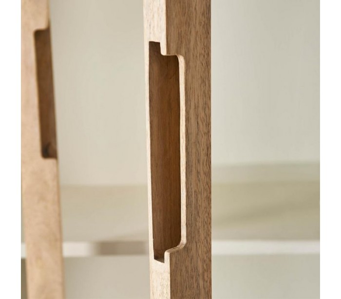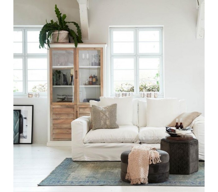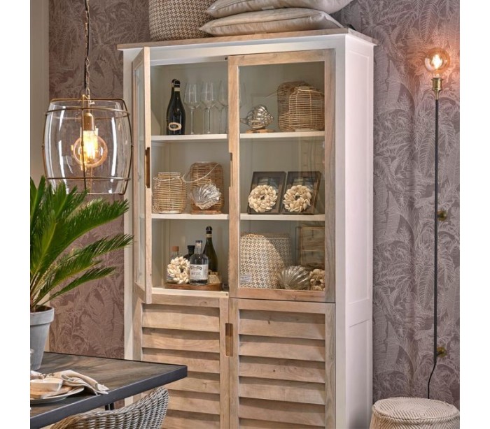 Vitrineskab i mangotræ H210 cm - Antik hvid/Rustik natur
