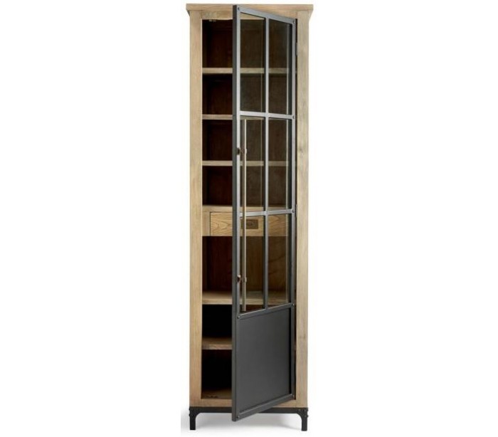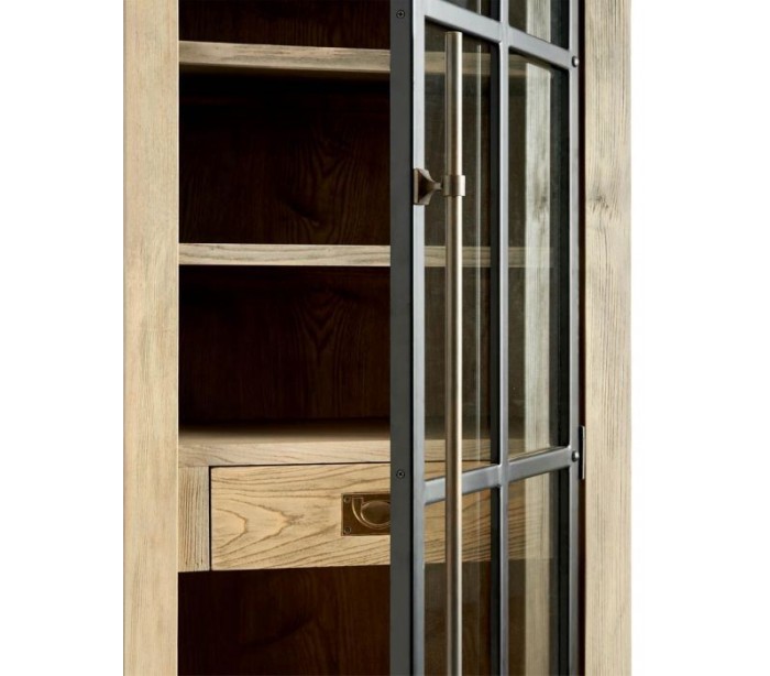 Vitrineskab i asktræ, jern og glas H214 cm - Natur/Industrielt sort