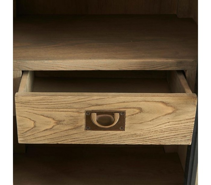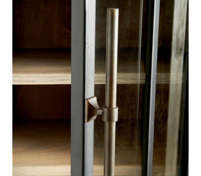 Riviera Maison vitrineskab i et design af genanvendt asktræ, industrielt sortlakeret jern og klart glas. Skabet indeholder 7 hylderum og 1 skuffe og måler 214 cm i højden og 65 cm i bredden. Bemærk venligst, at mindre ujævnheder kán forekomme som en del af designet. Modellen her er højrevendt. Venstrevendt ref. 376980.