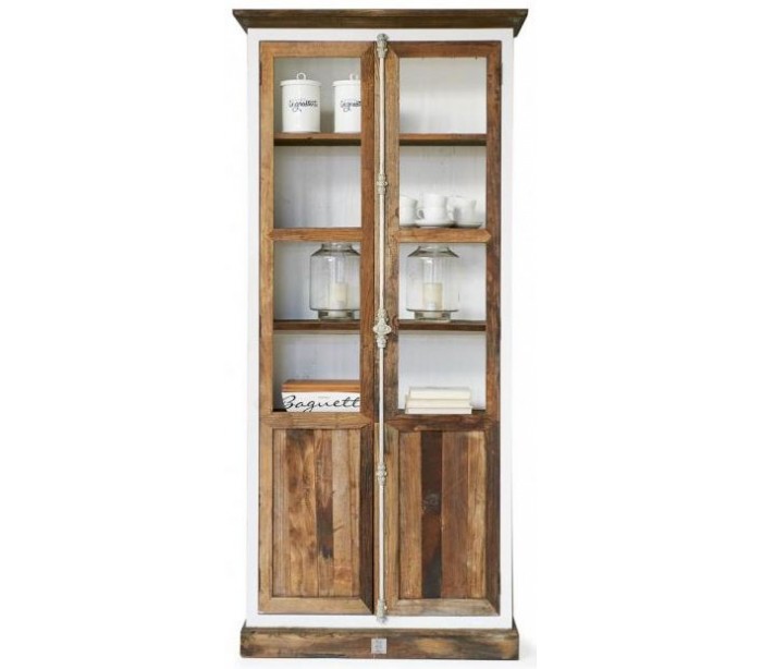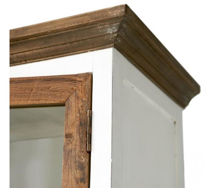 Vitrineskab i genanvendt elmetræ og poplartræ H220 cm - Antik hvid/Rustik brun