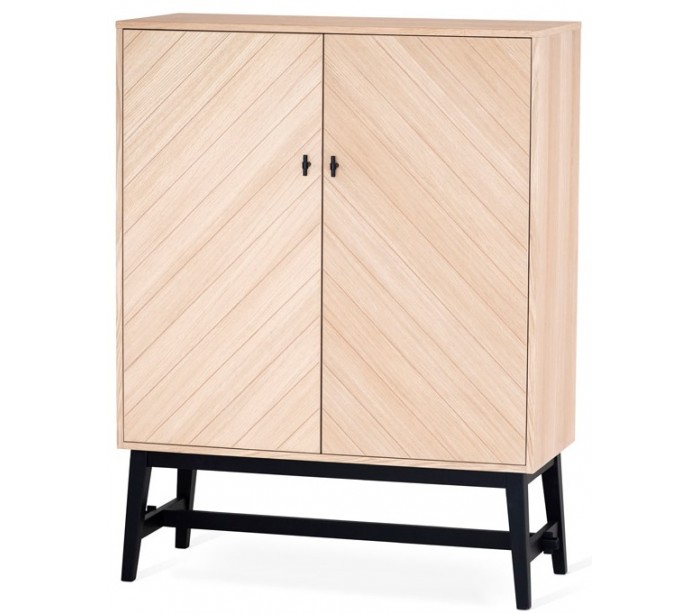Bedrock highboard i egetræsfinér og træ H125 x B95 cm - Sort/Hvidolieret eg