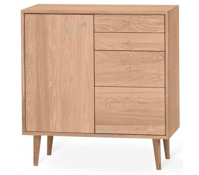Sideboard udført i et moderne design, fremstillet i olieret egetræ og egetræsfinér. Sideboardet er med 4 skuffer og 1 skab, hvori der forefindes 1 justérbar hylde. Sideboardet måler 80 cm i bredden og 85 cm i højden.