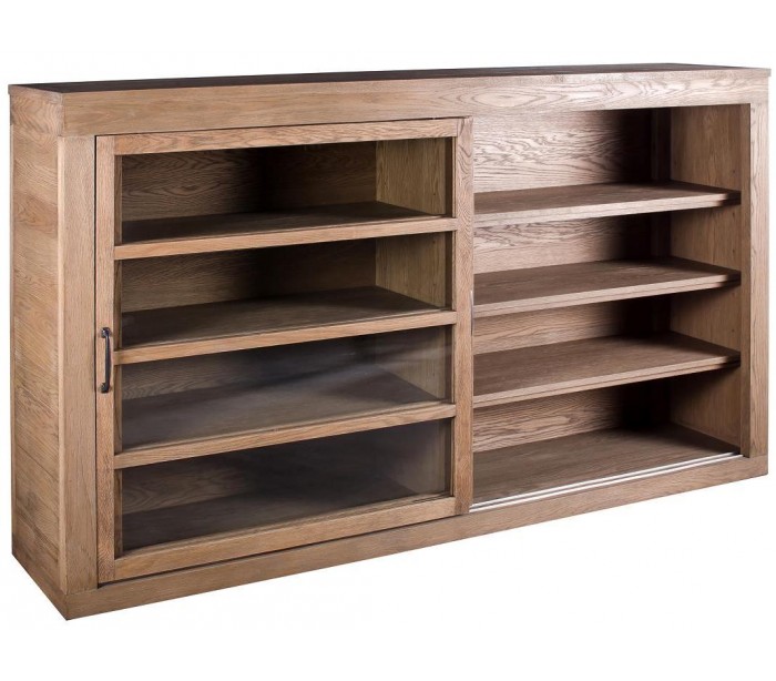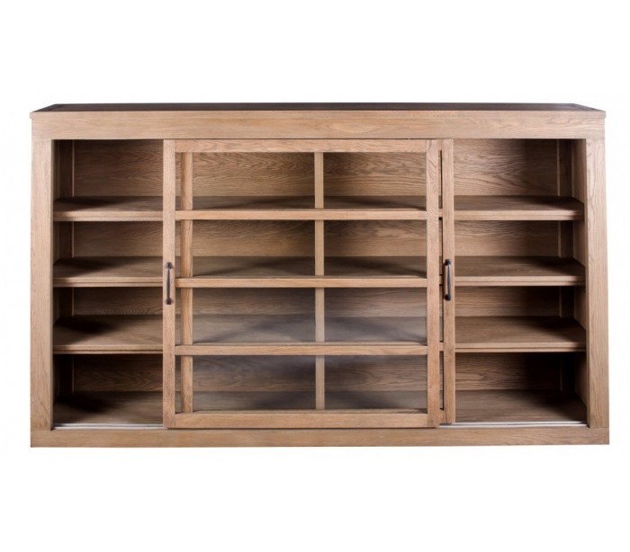 Sideboard udført i et rustikt design i olieret egetræ og klart glas. Sideboardet er med 2 skydelåger, der gemmer på i alt 8 hylderum. Sideboardet måler 200 cm i bredden og 120 cm i højden.