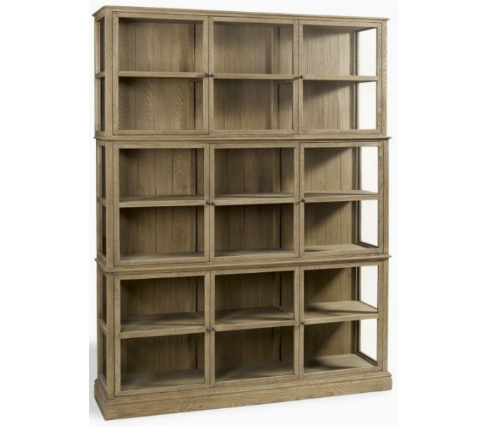 Vitrineskab udført i et design i børstet eg med klart glas. Vitrineskabet er med 9 skabslåger. Møblet måler 170 cm i bredden og 220 cm i højden.