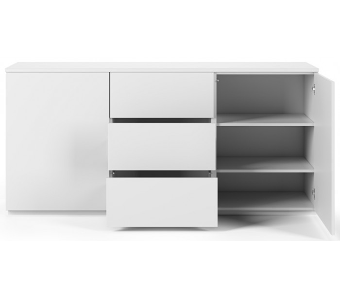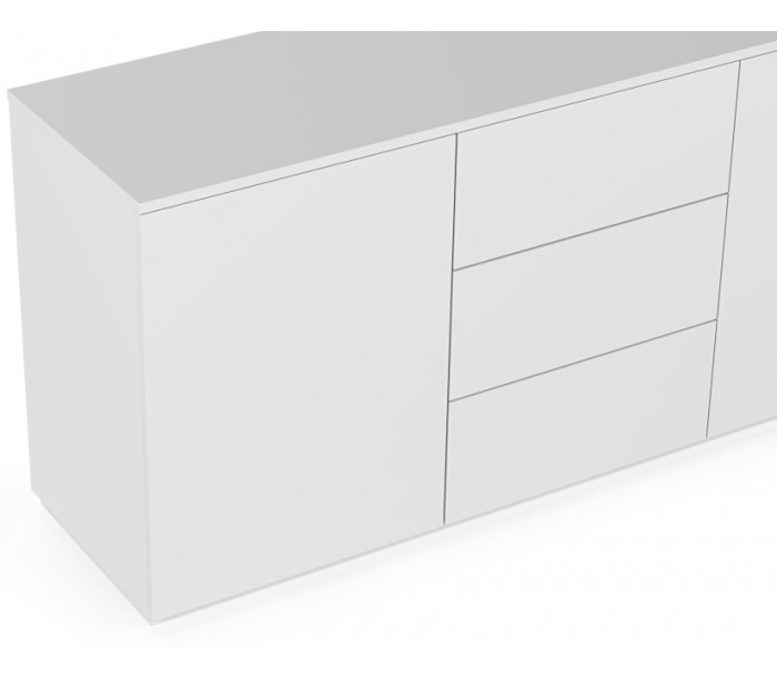 TemaHome Join sideboard udført i et design af mat hvid mdf og finér. Sideboardet måler 84 cm i højden og 180 x 50 cm i bredde og dybde. Sideboardet indeholder 3 skuffer samt 2 skabe, hvert med 3 hylderum.