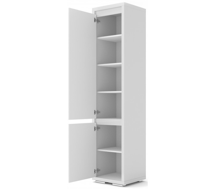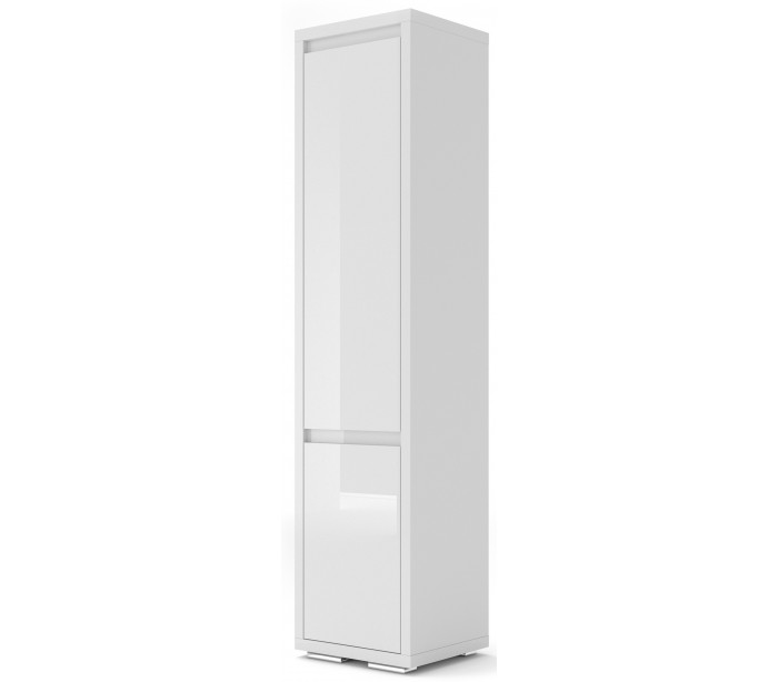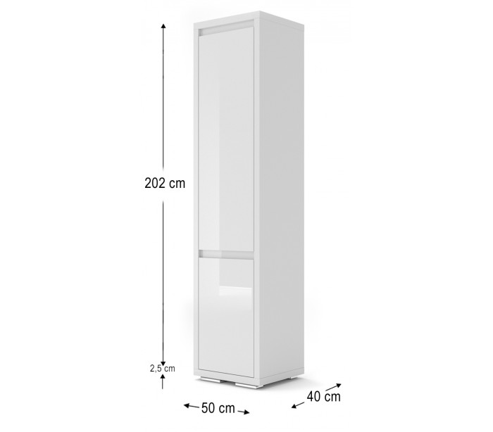 Nordic vitrineskab udført i et design af hvid højglans mdf og finér. Vitrineskabet måler 202 cm i højden og 50 x 40 cm i bredde og dybde. Vitrineskabet indeholder 6 hylderum.