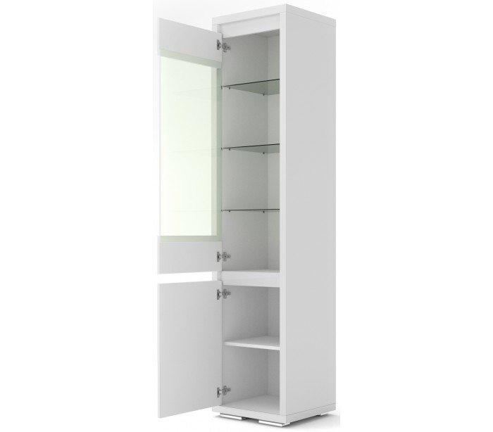 Nordic vitrineskab udført i et design af hvid højglans mdf og finér samt glas. Vitrineskabet måler 202 cm i højden og 50 x 40 cm i bredde og dybde. Vitrineskabet indeholder 6 hylderum.