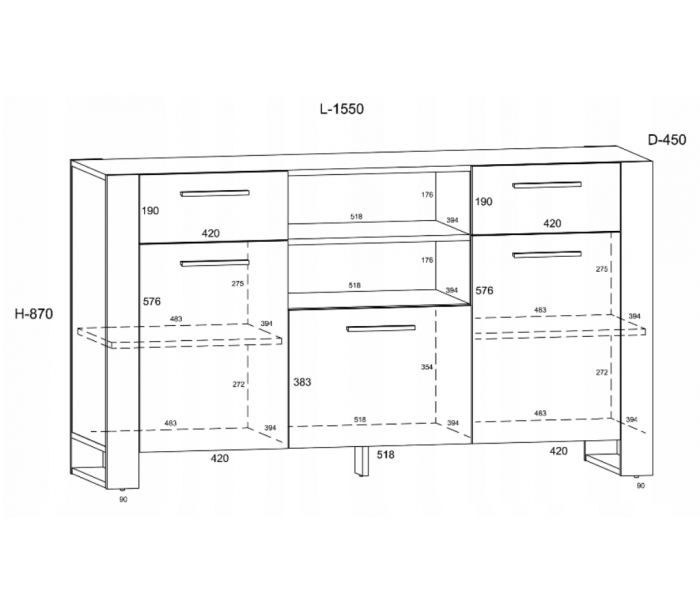 • 2 skuffer + 2 åbne hylderum