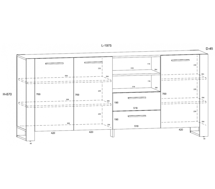 • 2 skuffer + 2 åbne hylderum