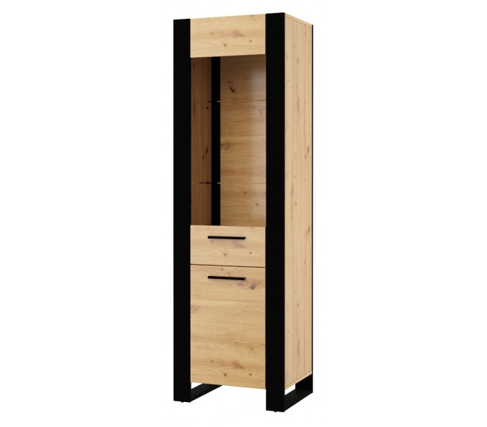 Nuka vitrineskab i møbelplade H188 cm - Sort/Vild eg