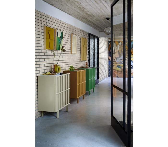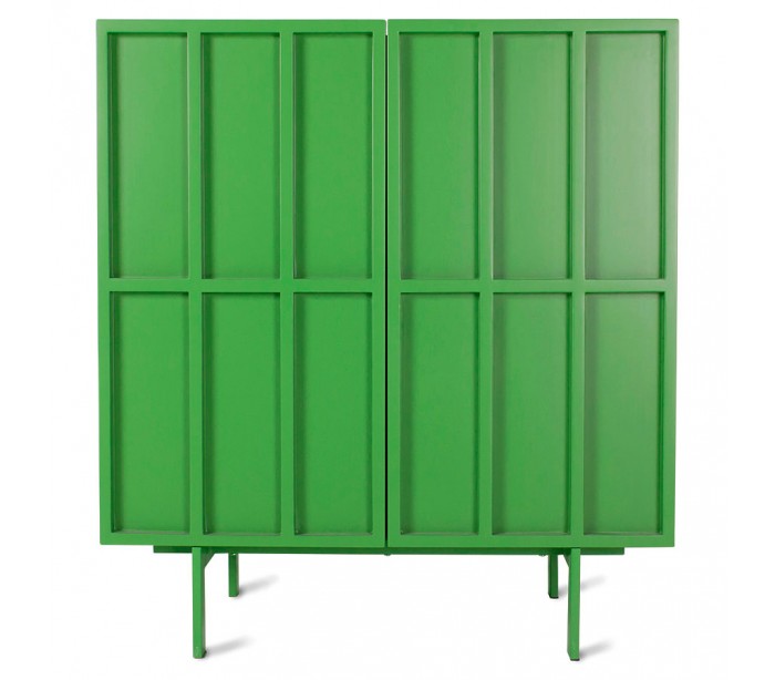 Sideboard med 2 skabslåger, udført i et moderne design i grønlakeret mdf og metal. Sideboardet indeholder 2 dobbelte hylderum og måler 89 cm i højden og 80 cm i bredden.