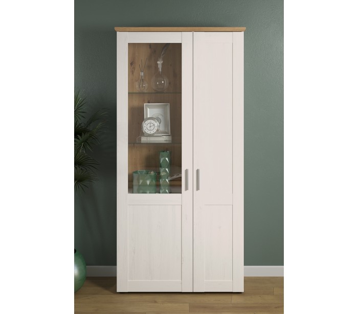 Shade vitrineskab i møbelplade og glas H194 cm - Antik hvid/Vild eg