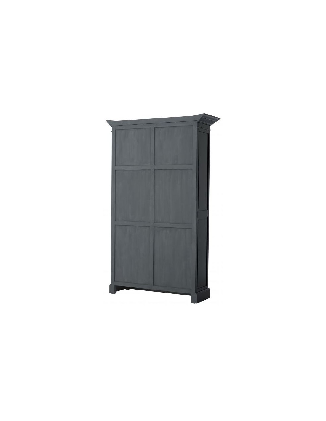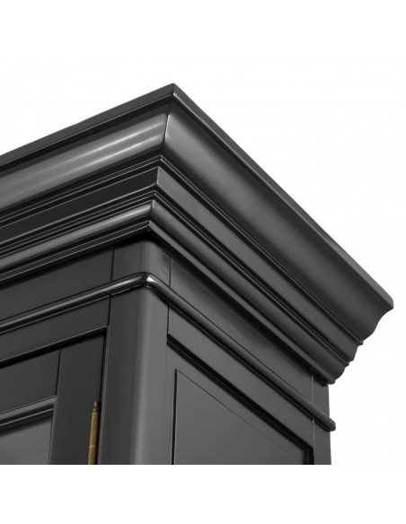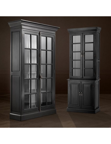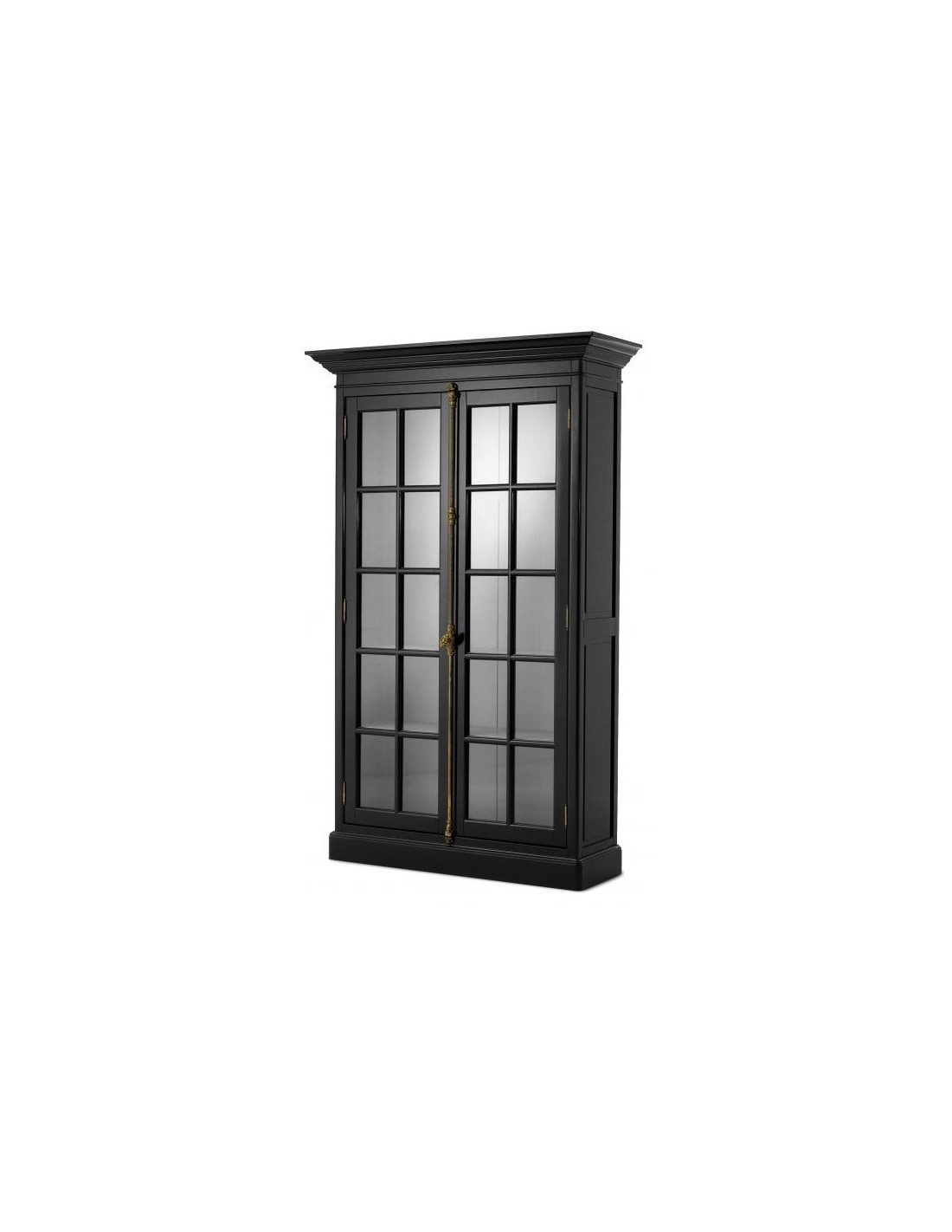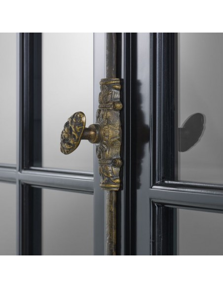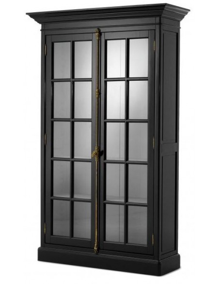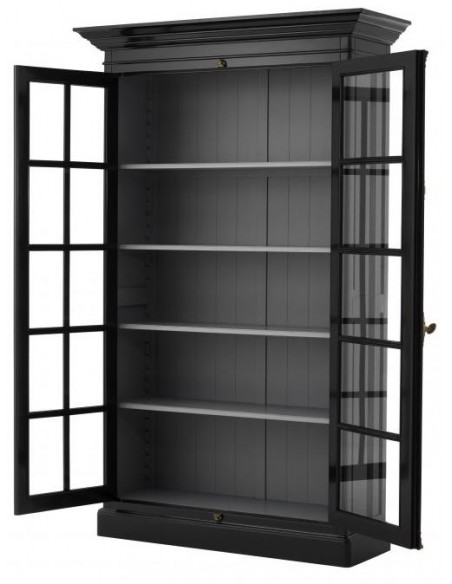 Eichholtz Côte Sud vitrineskab udført i et moderne design af sortlakeret birketræ, med grå inderside. Skabslågerne er i klart glas. Vitrineskabet måler 233 cm i højden og 141 x 48 cm i bredde og dybde og indeholder 4 højdejustérbare hylder.