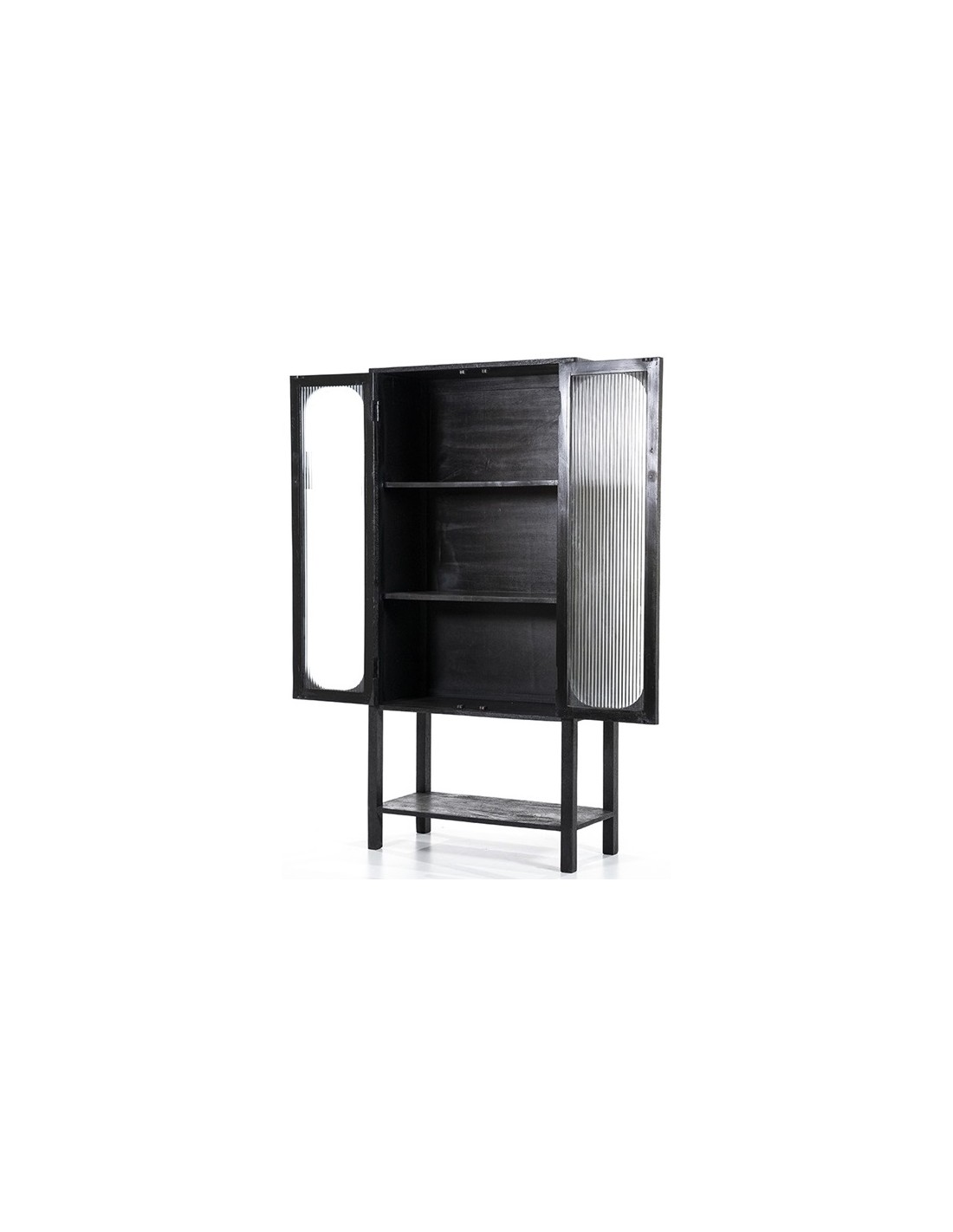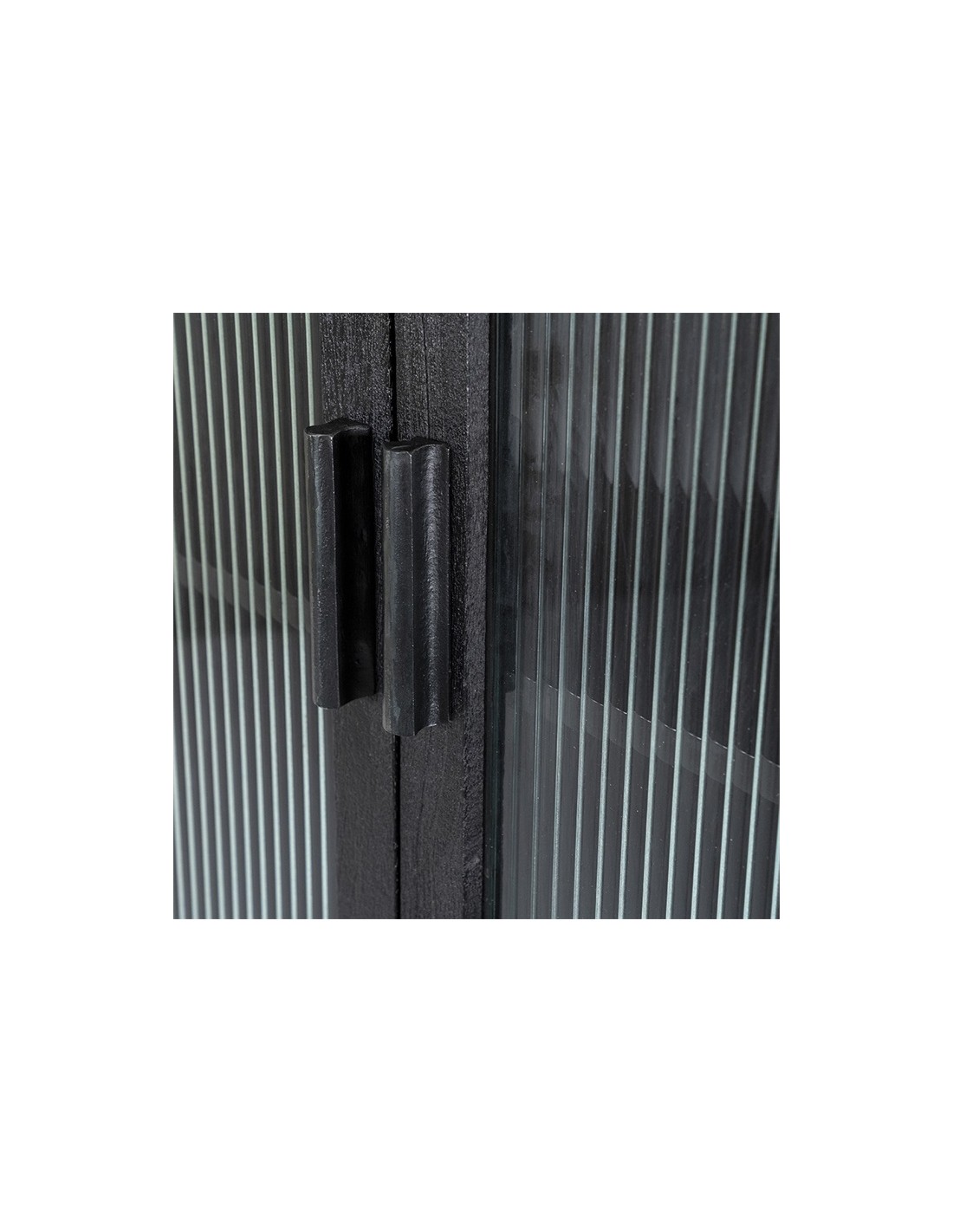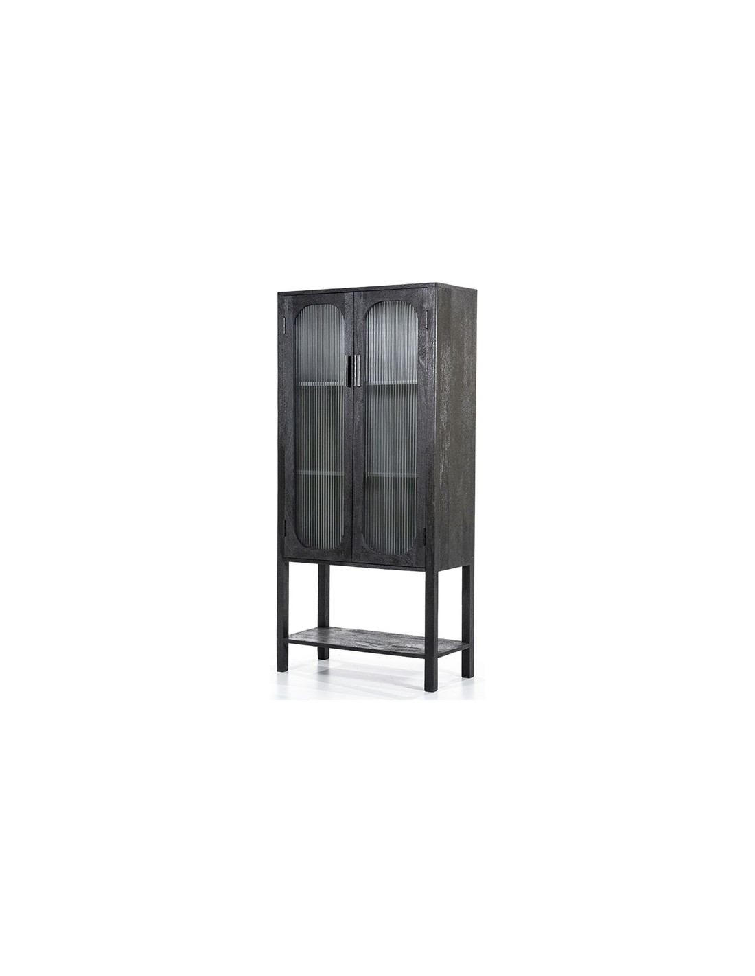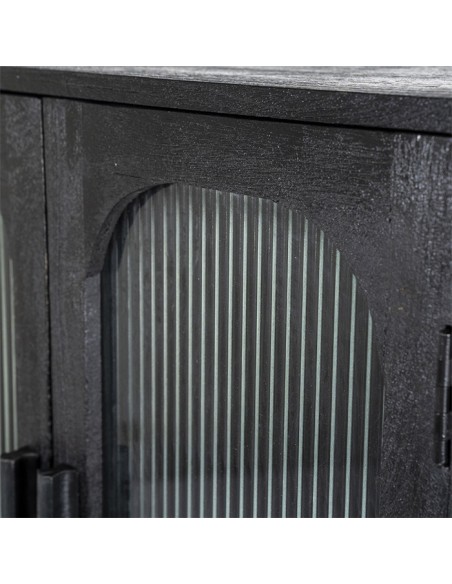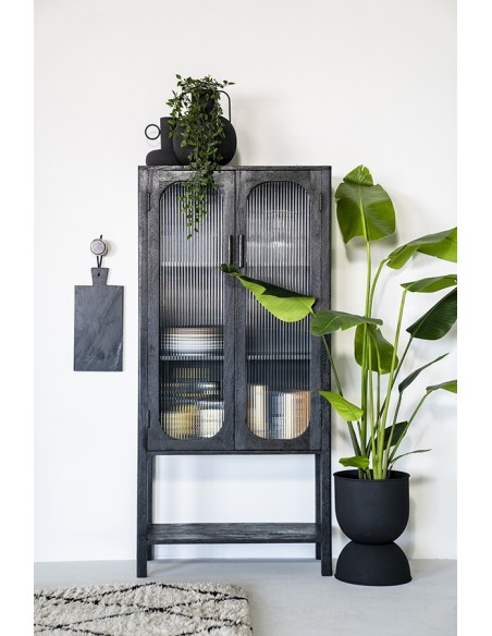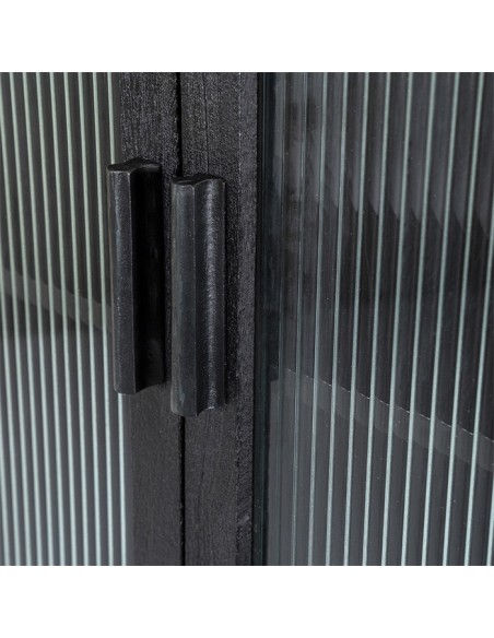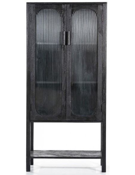 Eden vitrineskab udført i et design af sandblæst sortlakeret mangotræ og bambus, med ruder i klart rillet glas. Vitrineskabet måler 160 cm i højden og 75 cm i bredden. Skabet indeholder 2 hylder (ikke justérbare).