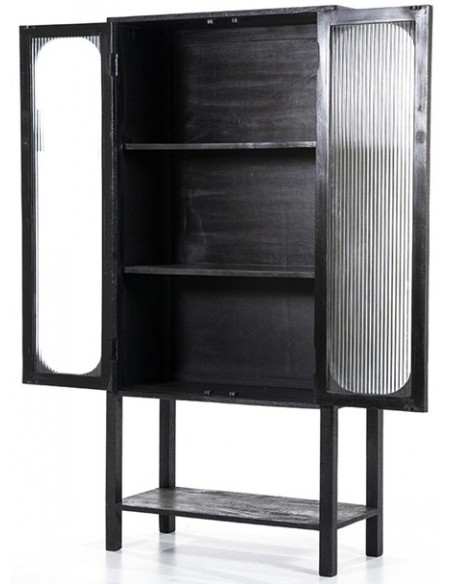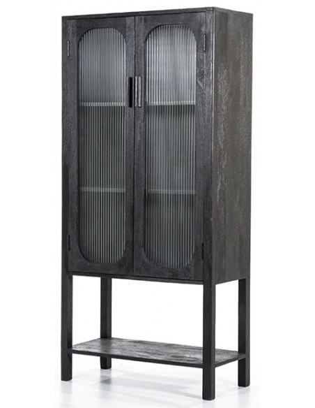 Eden vitrineskab i mangotræ og glas H160 x B75 cm - Sort