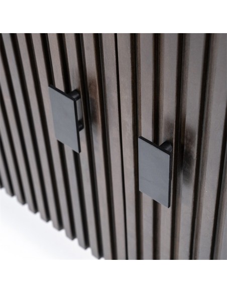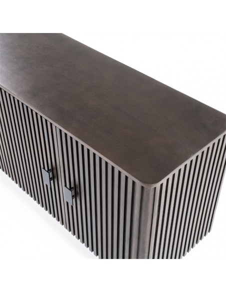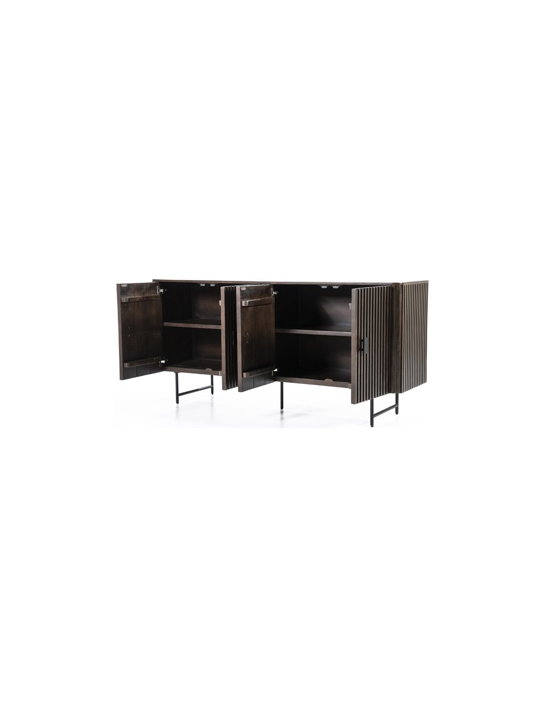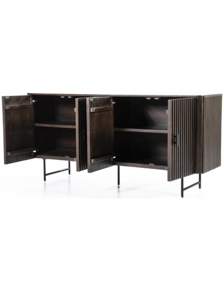 Sideboard udført i et rustikt design af sortlakeret metal og mørkebrun lakeret mangotræ. Sideboardet måler 80 cm i højden og 170 x 45 cm i bredde og dybde. Sideboardet indeholder 2 dobbelte hylderum.