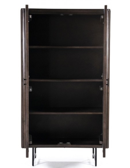 Remi Vitrineskab i metal og mangotræ H170 cm - Sort/Mørkebrun