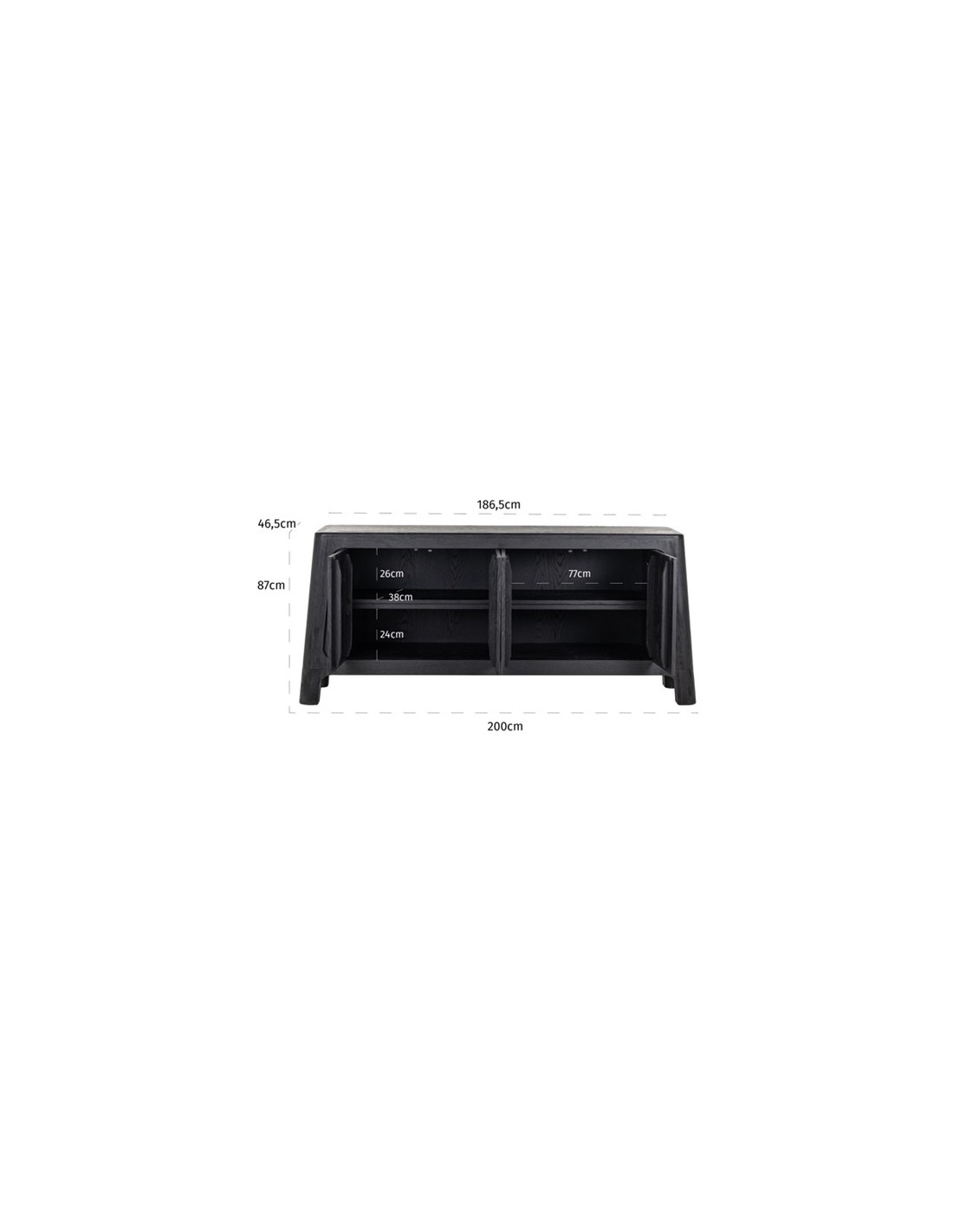 Sideboard i et design fra hollandske Richmond Interiors. Sideboardet er fremstillet bejset sort egetræ og måler 200 (186,5 cm) x 87 cm i bredde og højde og 46,5 cm i dybden.