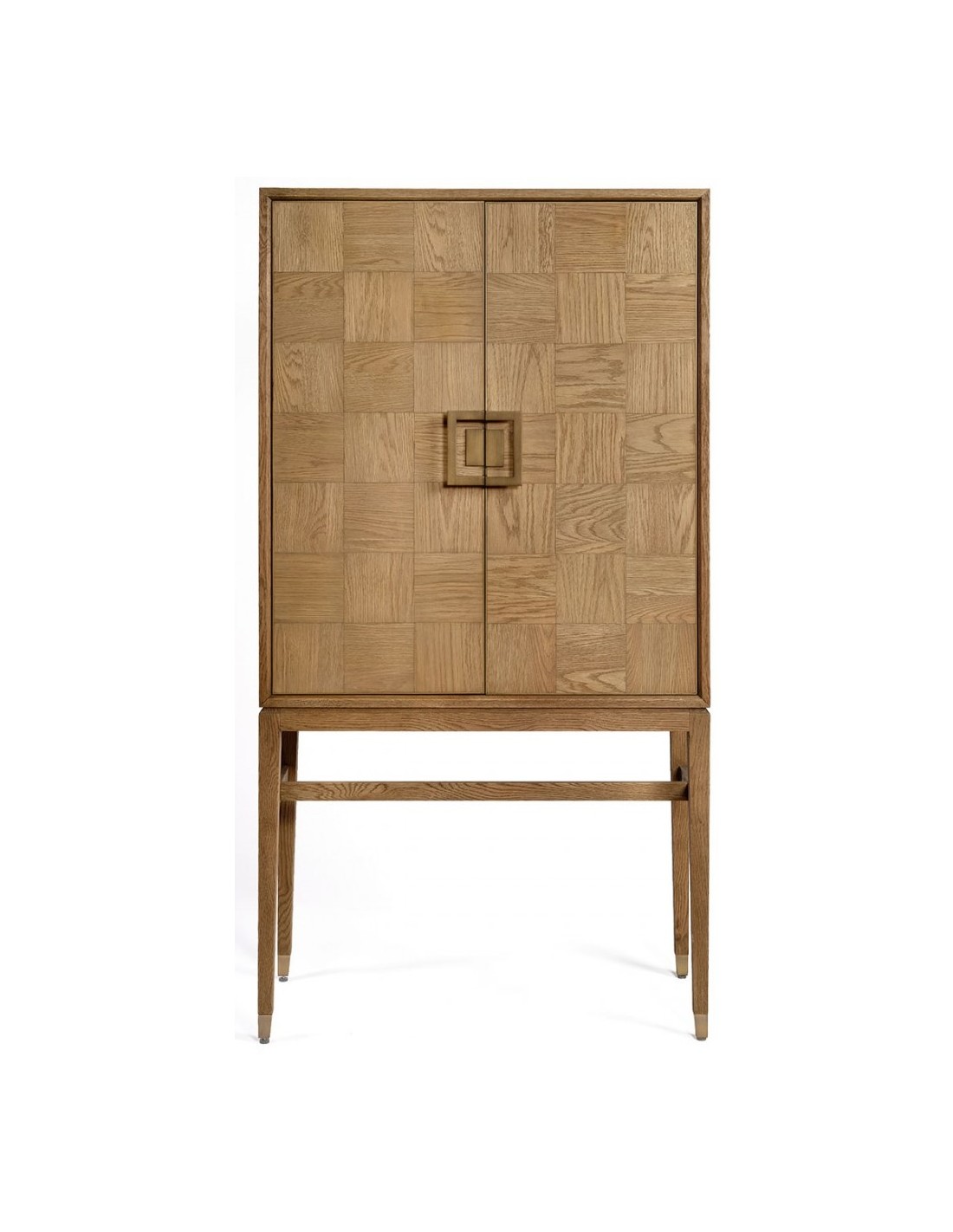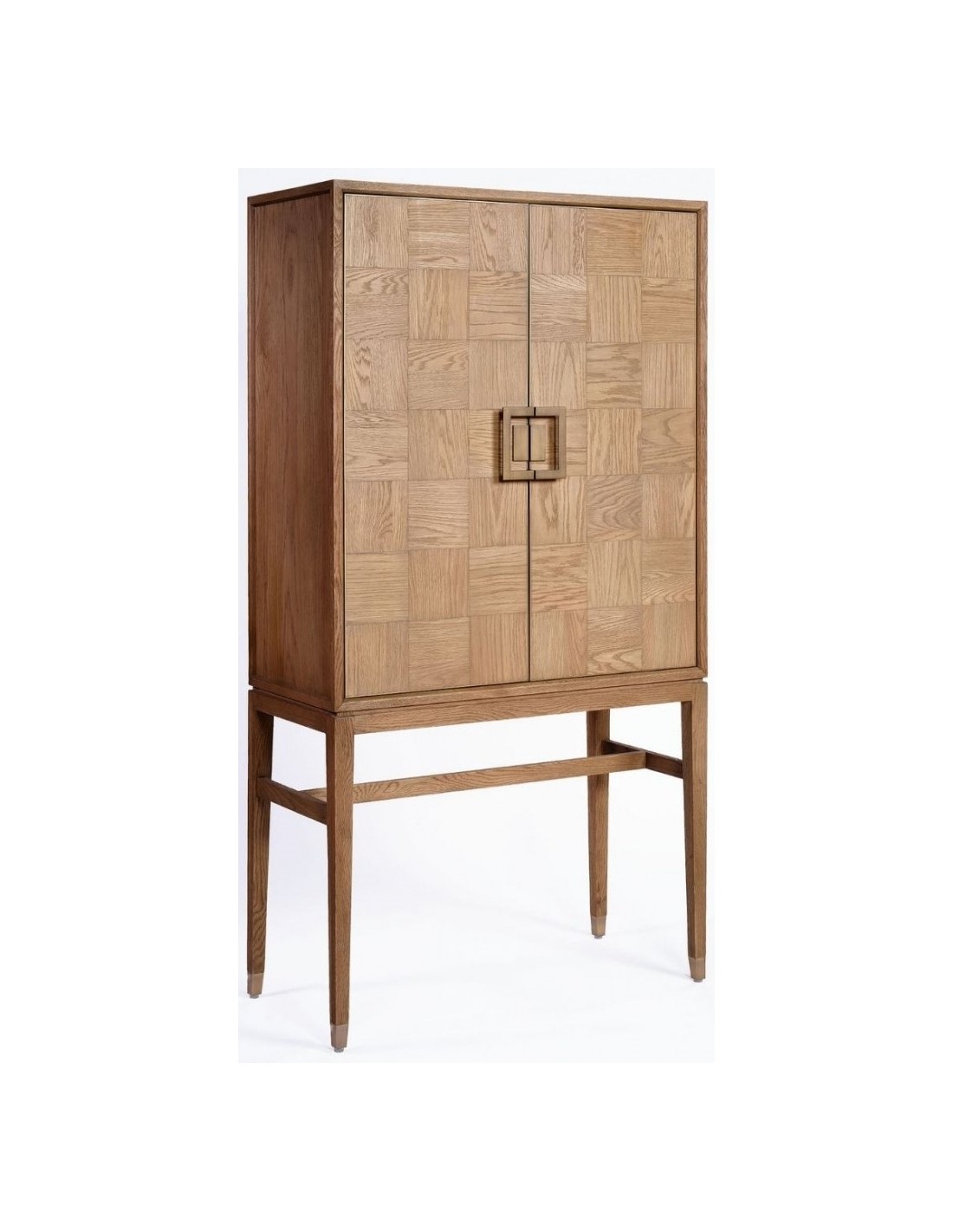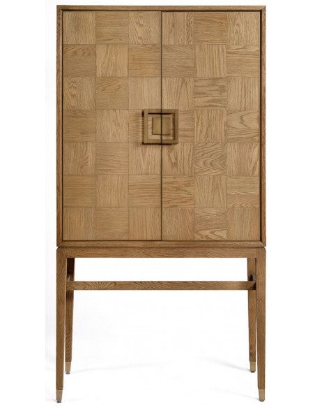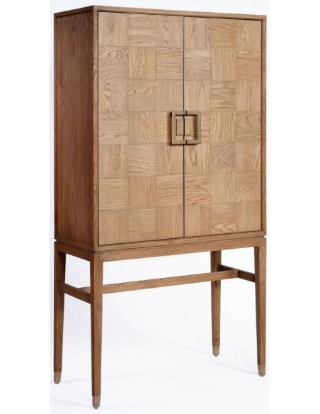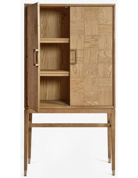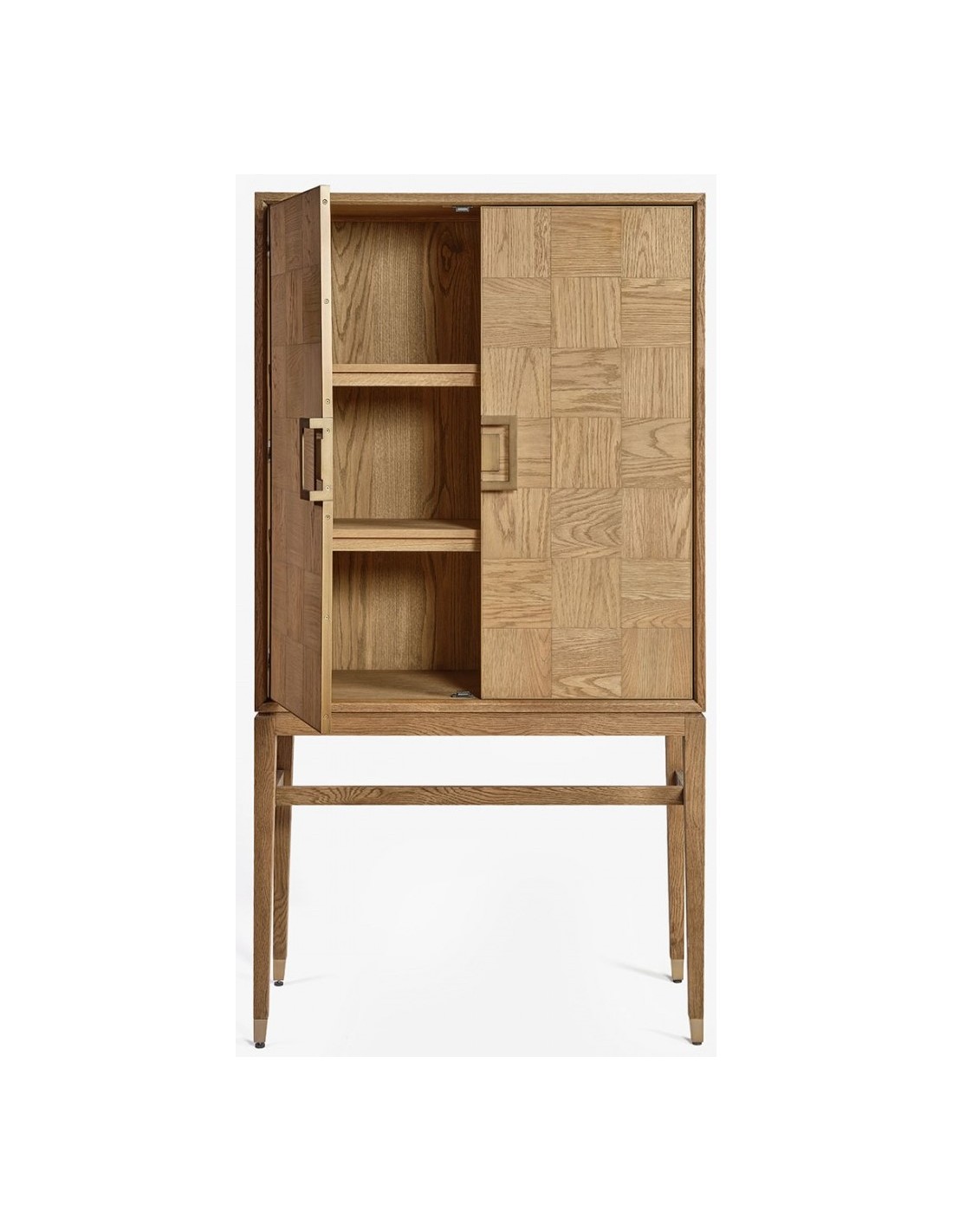 Vitrineskab i egetræ og metal H181 cm - Antik guld/Patineret eg