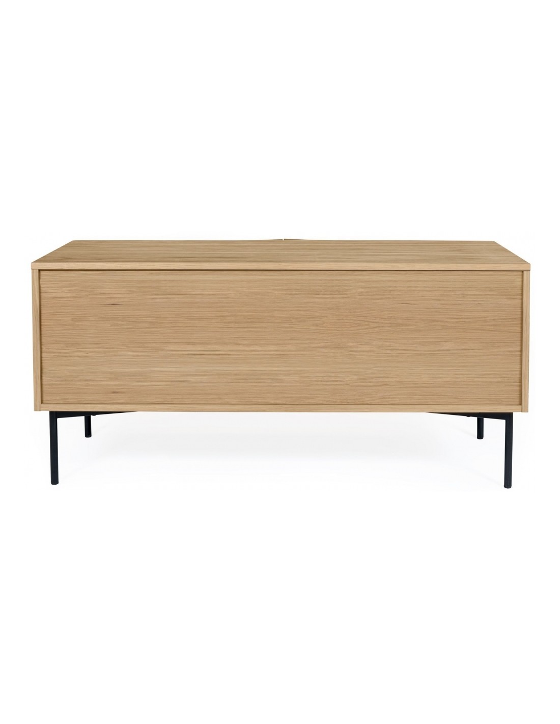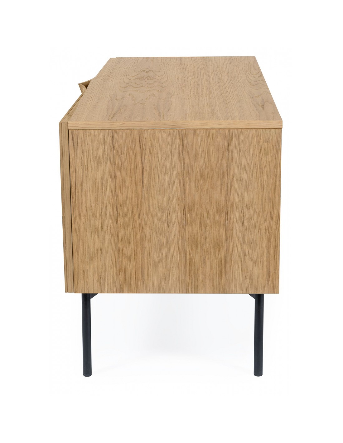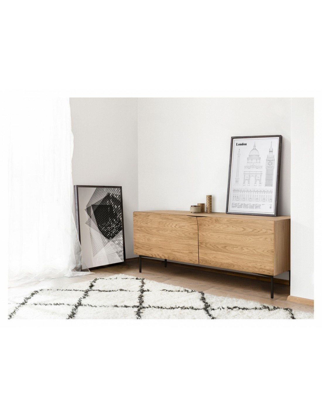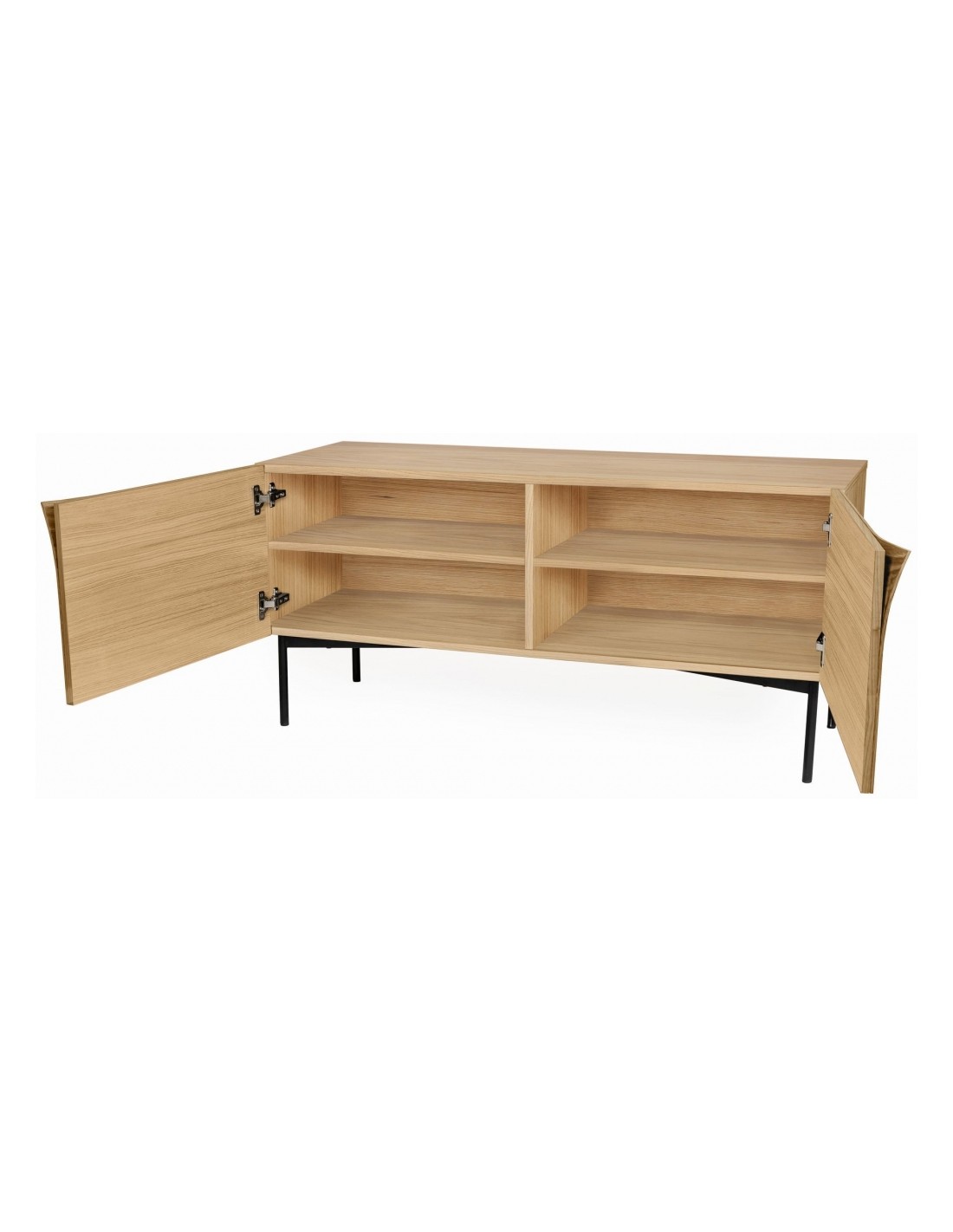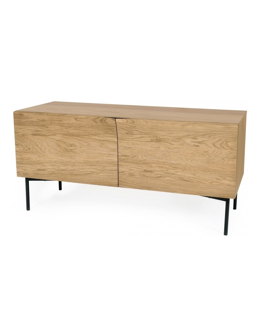 Flop sideboard udført i et moderne design med 2 låger som gemmer på i alt 4 hylderum. Sideboardet er fremstillet i metal og egetræsfinér.