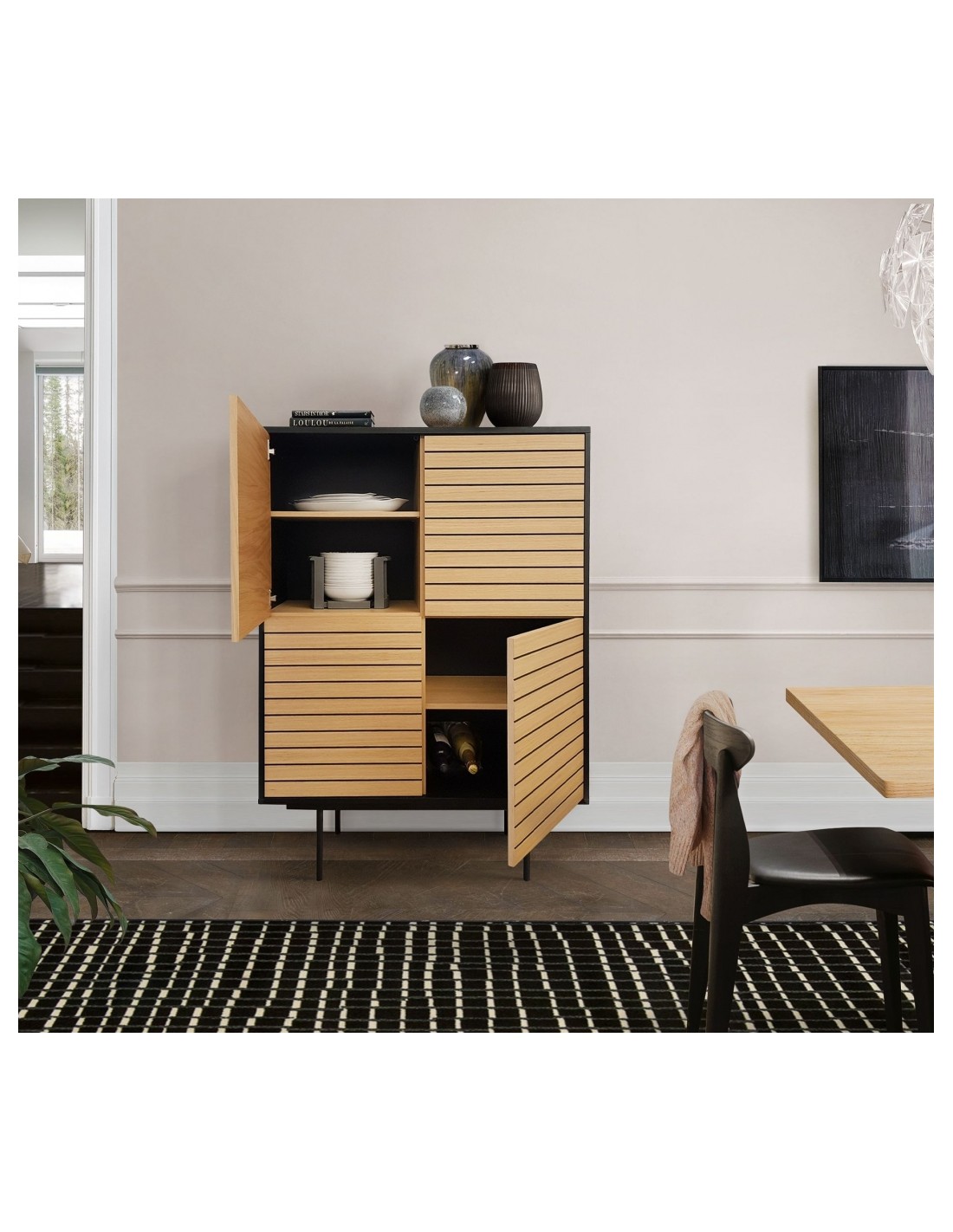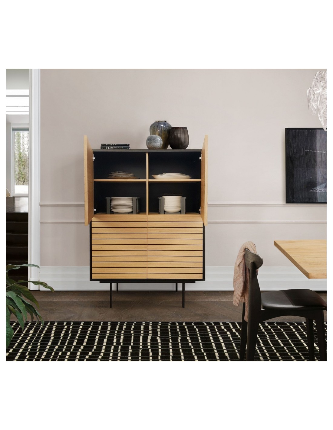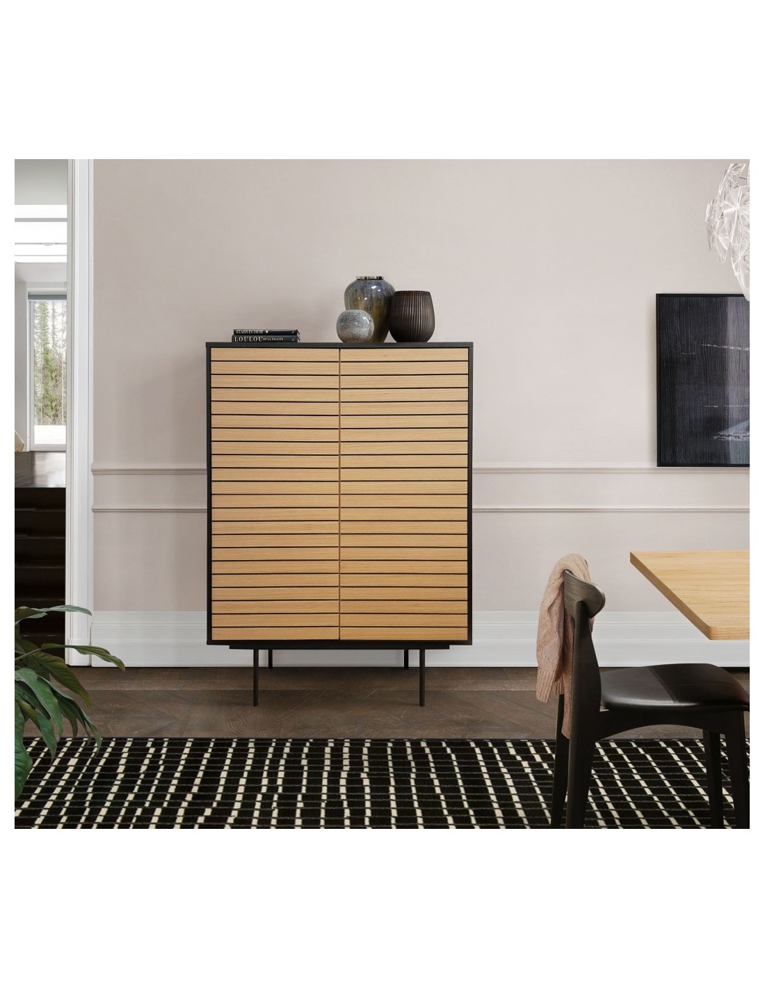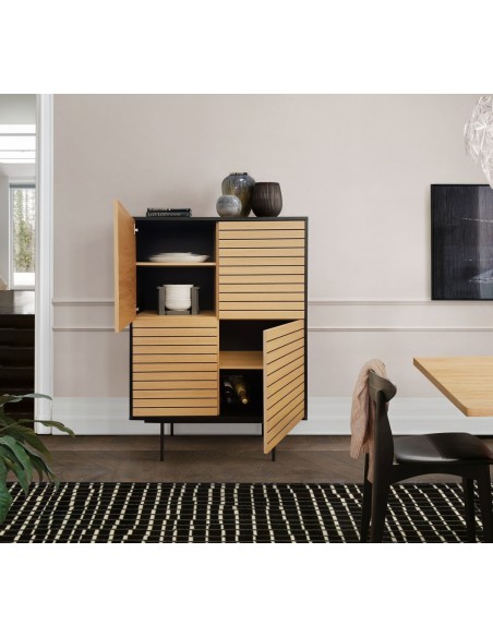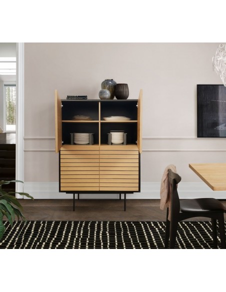 Woodman Stripe Vitrineskab H140 x B101 cm - Eg/Sort