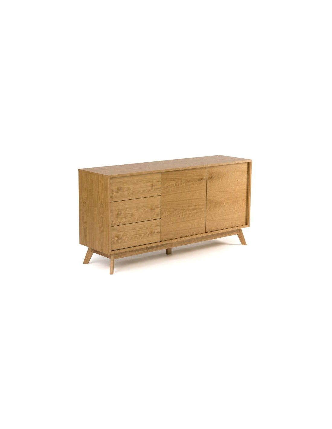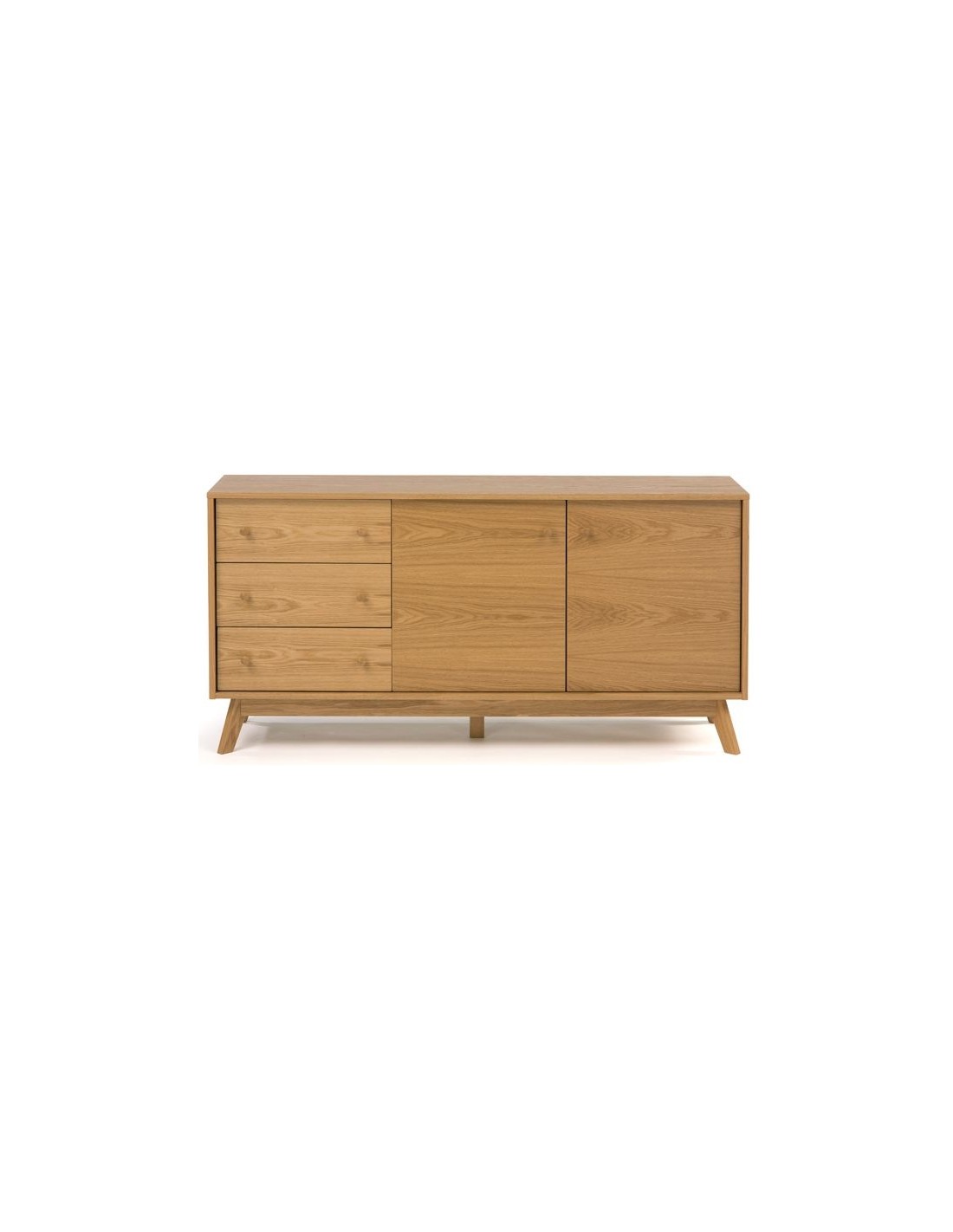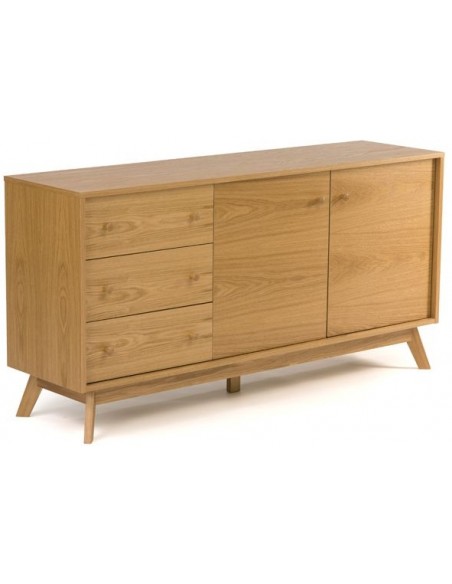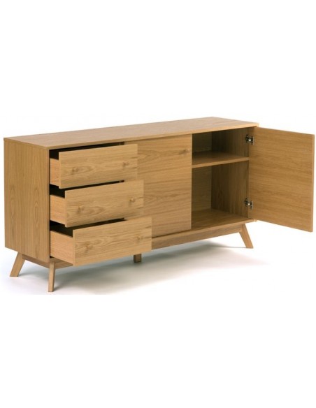 Kensal sideboard udført i et moderne design med 2 låger som gemmer på i alt 4 hylderum. Hertil 3 skuffer. Sideboardet er fremstillet i egetræ og egetræsfinér.
