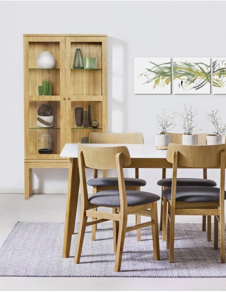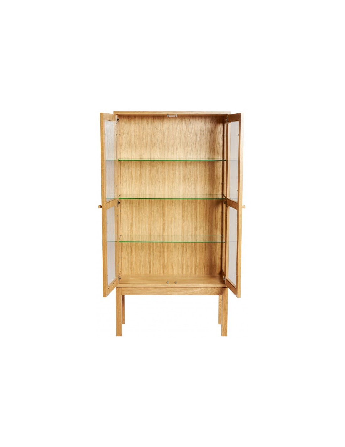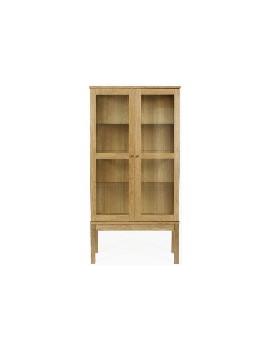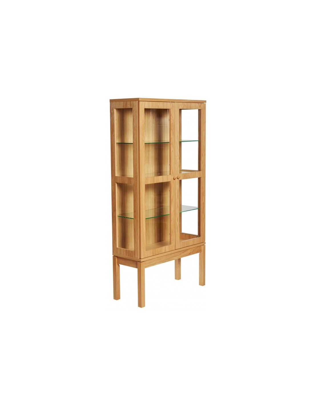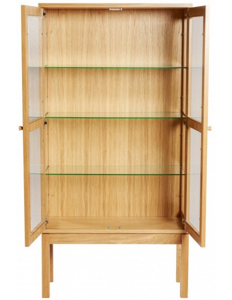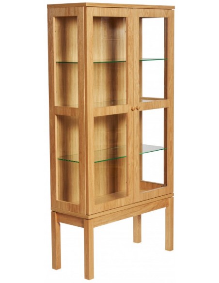 AbbeyWood vitrineskab udført i et moderne design med 2 glaslåger som gemmer på i alt 3 hylder. Vitrineskabet er fremstillet i egetræ og egetræsfinér.
