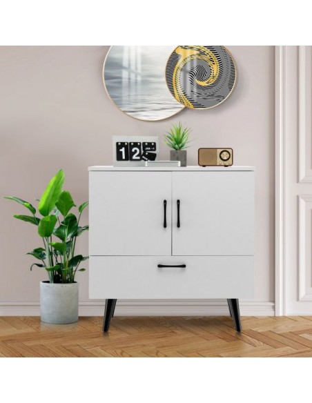 Sideboard i træ og mdf H78 x B76 cm - Sort/Hvid