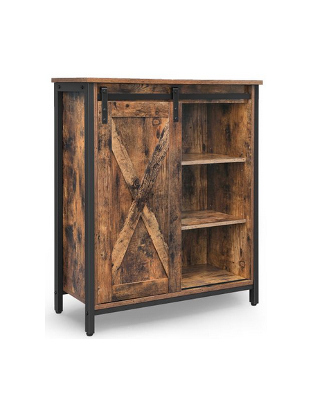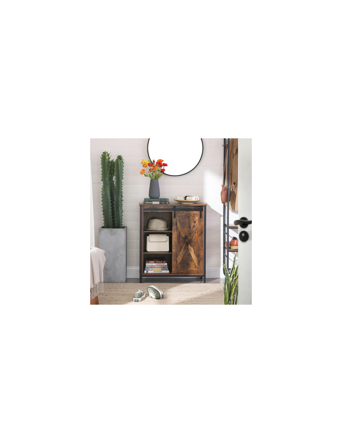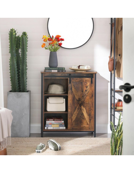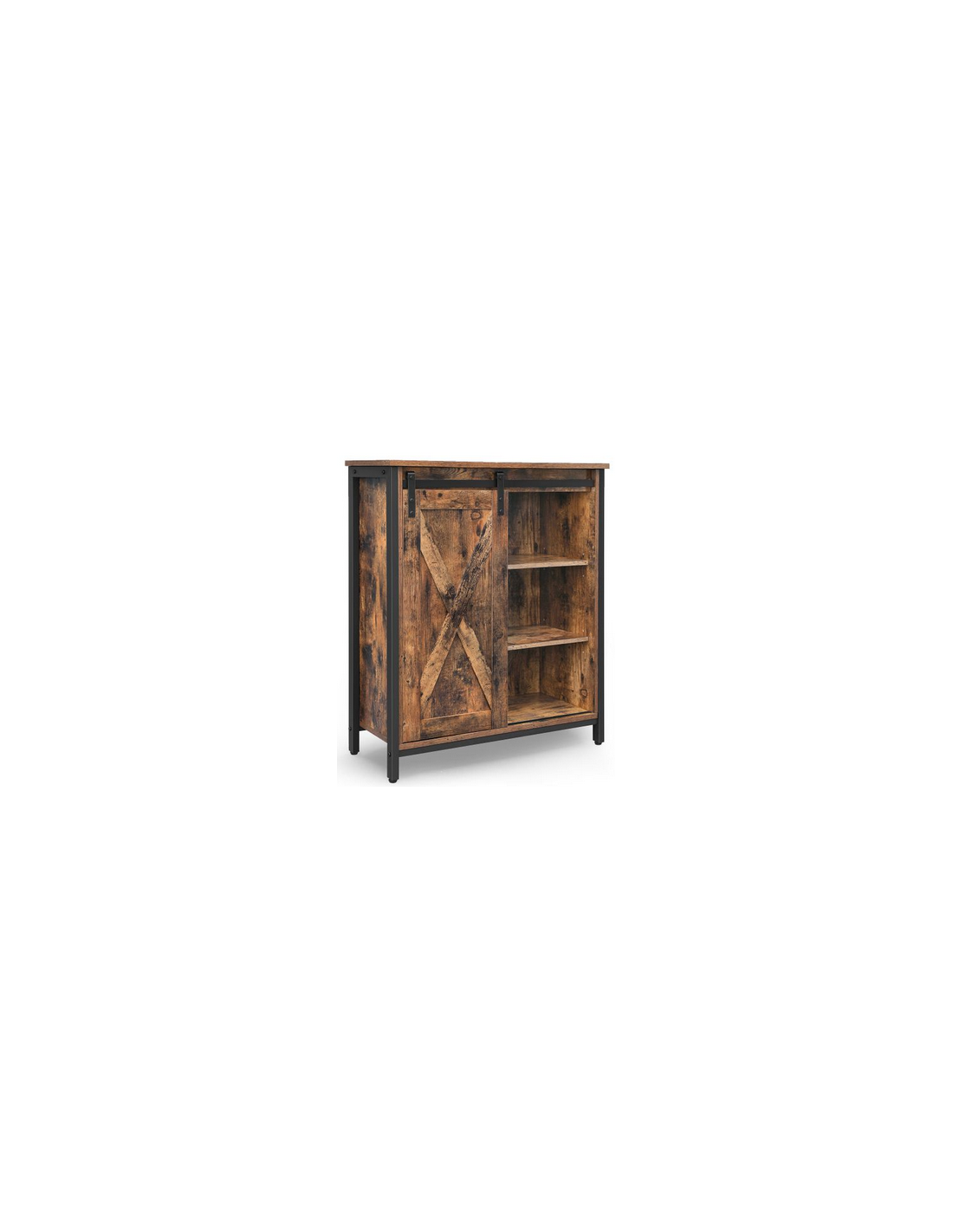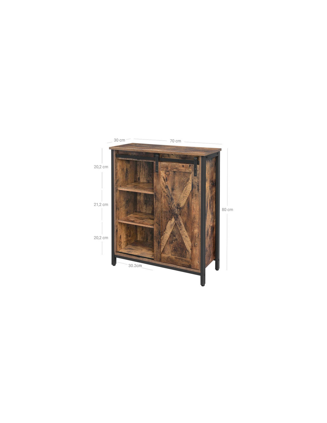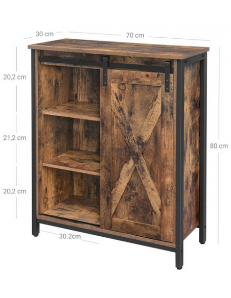 Sideboard udført i et design af sortlakeret metal og brun møbelplade. Sideboardet måler 80 cm i højden og 70 x 30 cm i bredde og dybde.