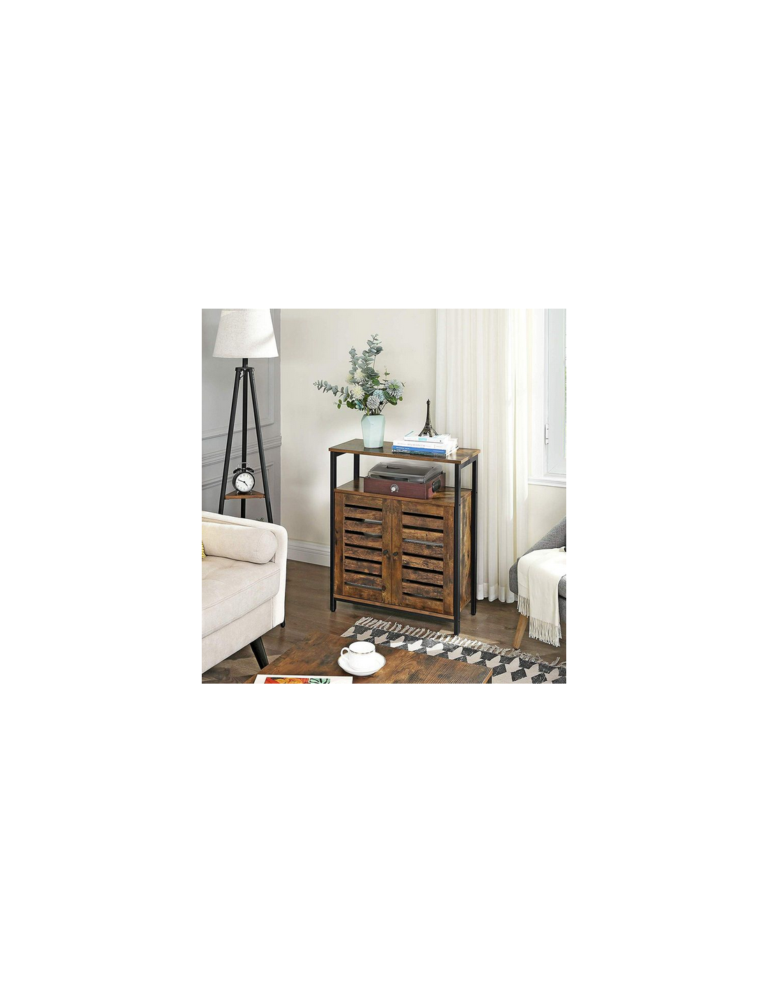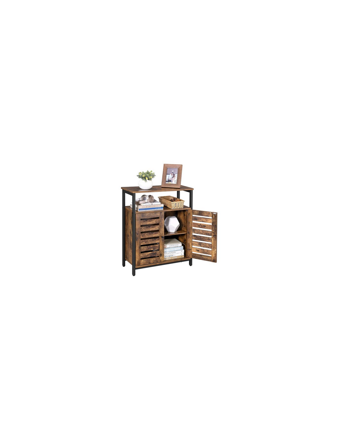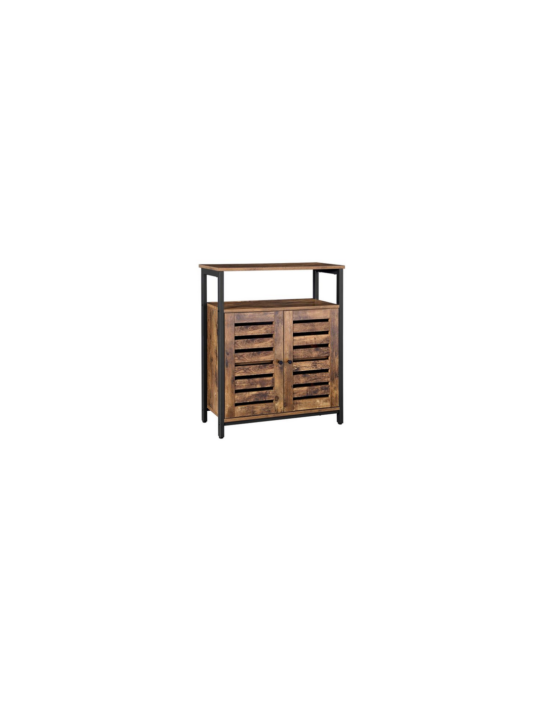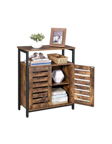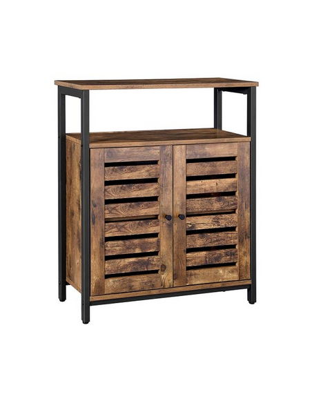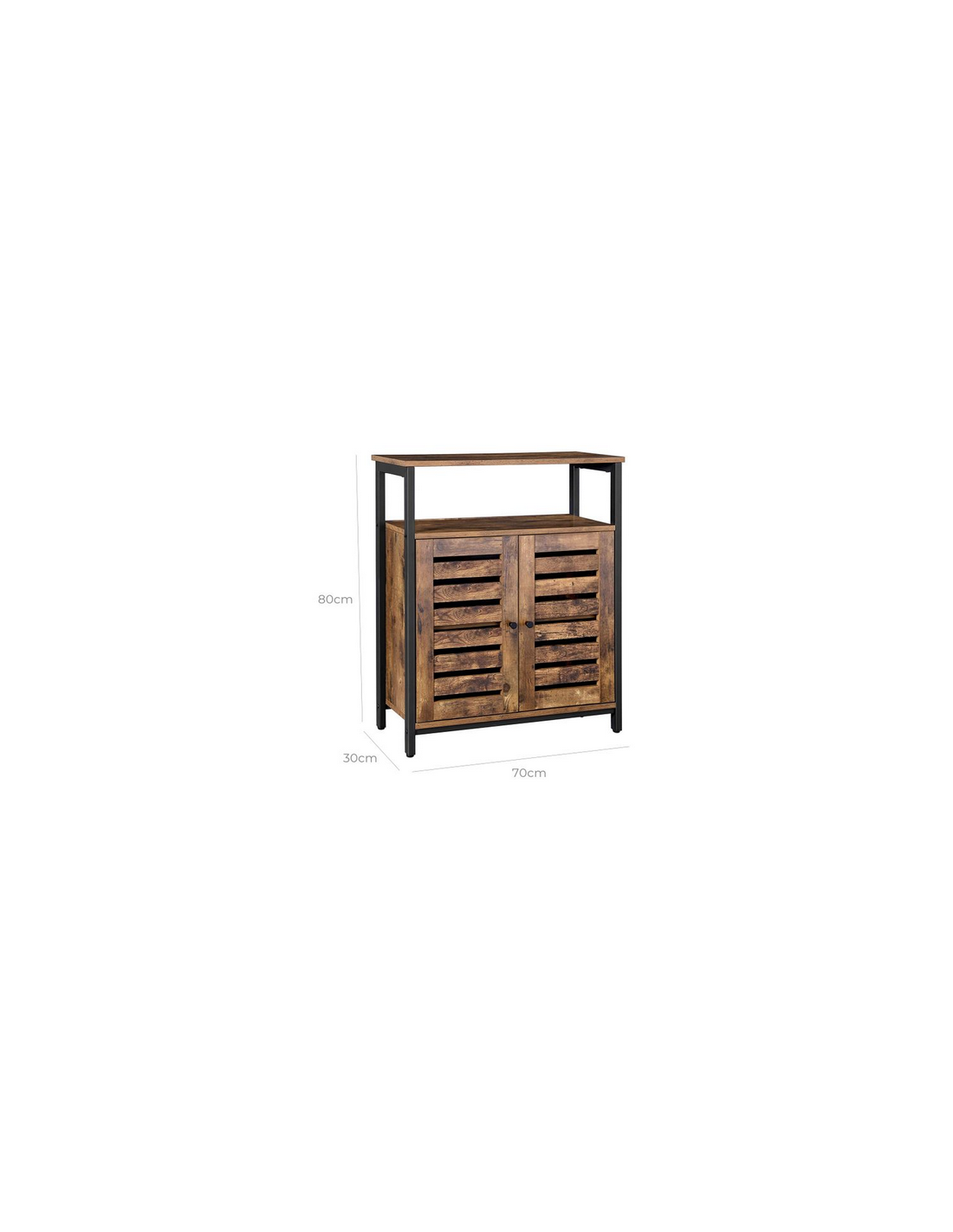 Sideboard udført i et design af sortlakeret metal og brun møbelplade. Sideboardet måler 80 cm i højden og 70 x 30 cm i bredde og dybde.