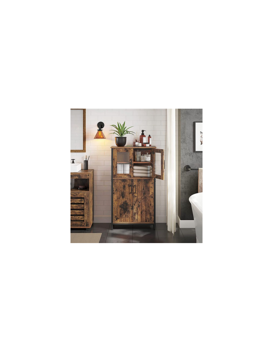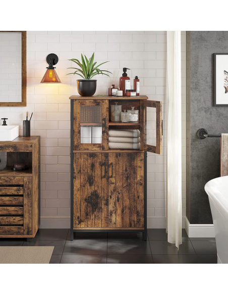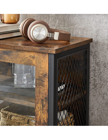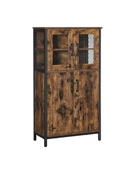 Vitrineskab i metal og møbelplade H108 x B60 x D30 cm - Sort/Brun